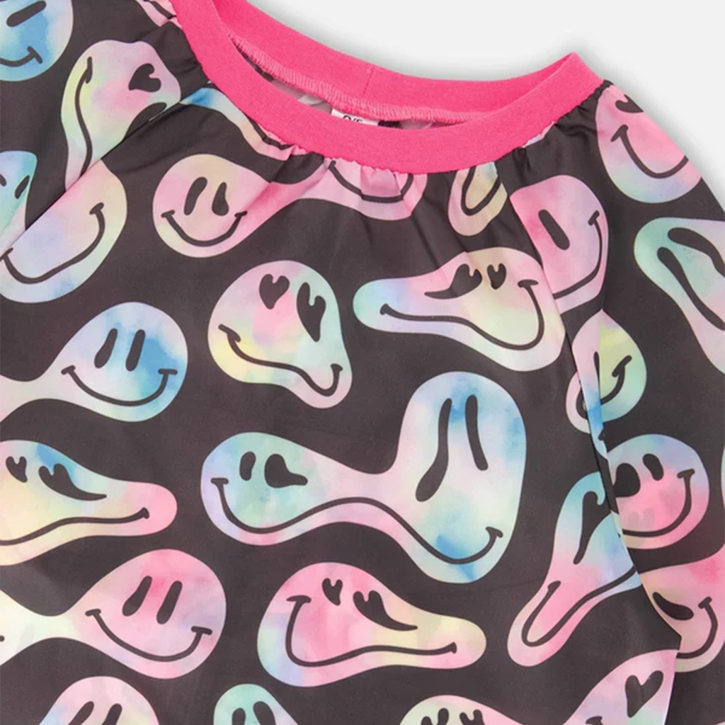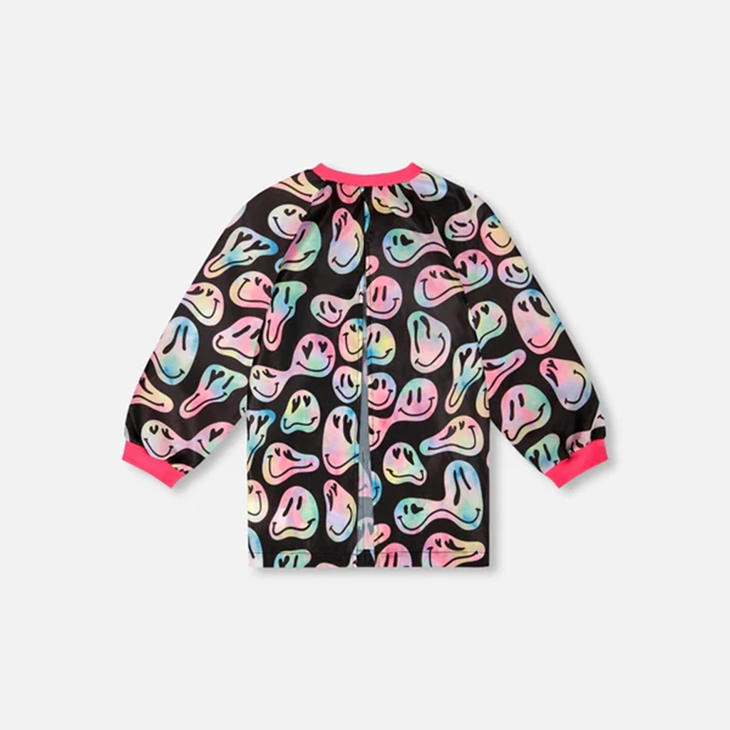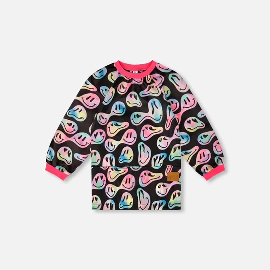 Fais de ton cours d’arts plastiques le moment le plus stylé de la journée avec notre tablier à imprimé de madames sourire. Confectionné en tissu écoresponsable fait à partir de bouteilles en plastique recyclées, ce tablier scolaire a une coupe à manches raglan longues, un col rond, des poignets élastiqués, deux poches frontales pratiques et une finition déperlante.