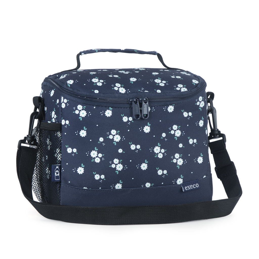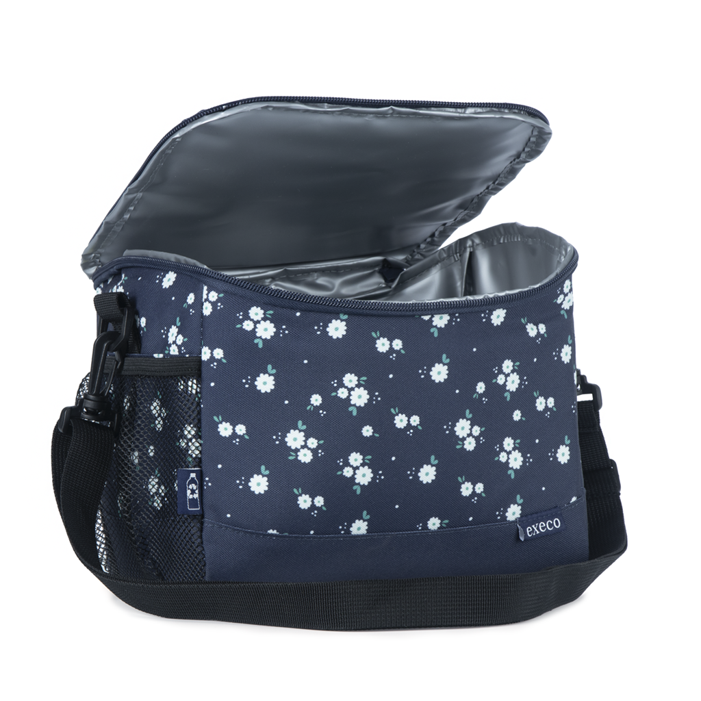 Execo - Boîte à lunch avec grande ouverture - Fleurs blanches - Marine (23x17x15cm)