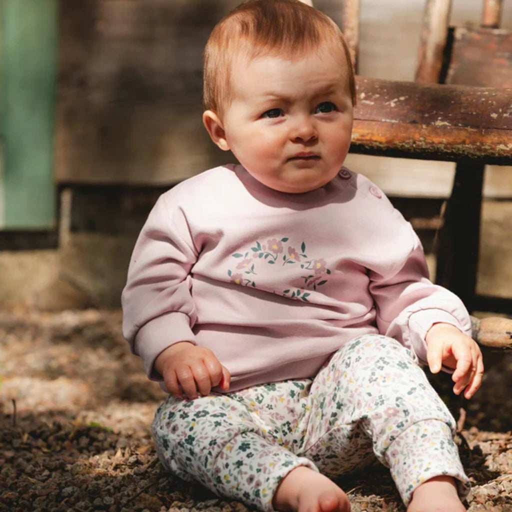 Pensé pour s’adapter à leur croissance, notre ensemble pantalon évolutif et haut à manches longues mauve neutre en coton biologique allie praticité et douceur. Le chandail à manches longues a une coupe décontractée avec des boutons-pression à l’épaule pour un habillage facile ainsi qu'un adorable motif floral sur la poitrine, tandis que le pantalon évolutif est doté d’une taille élastique, de chevilles à revers pliés et d'un doux motif floral intégral. Un essentiel du quotidien, parfait pour le confort et la liberté de mouvement.