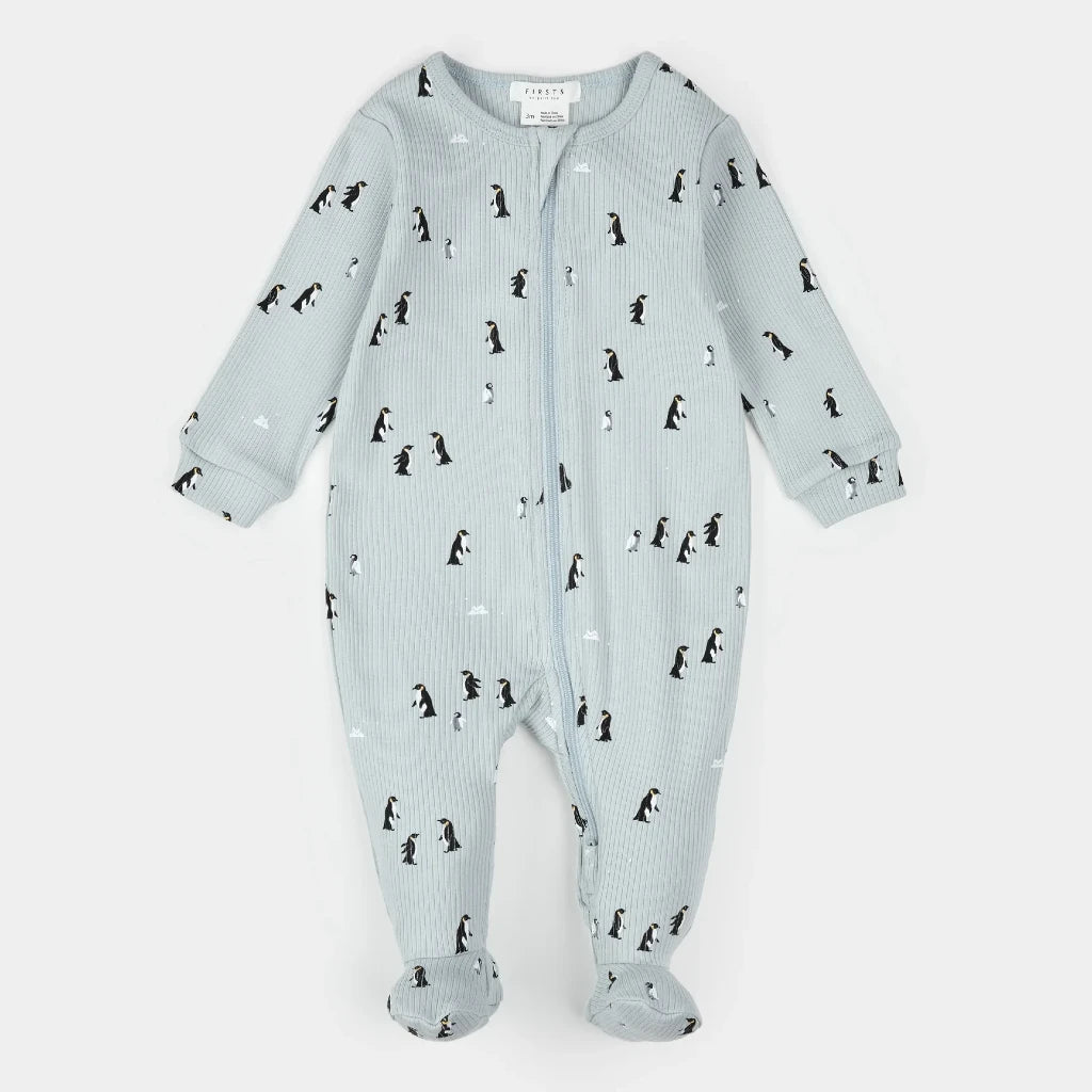 Petit lem - Pyjama une-pièce - Pingouin - Bleu perle