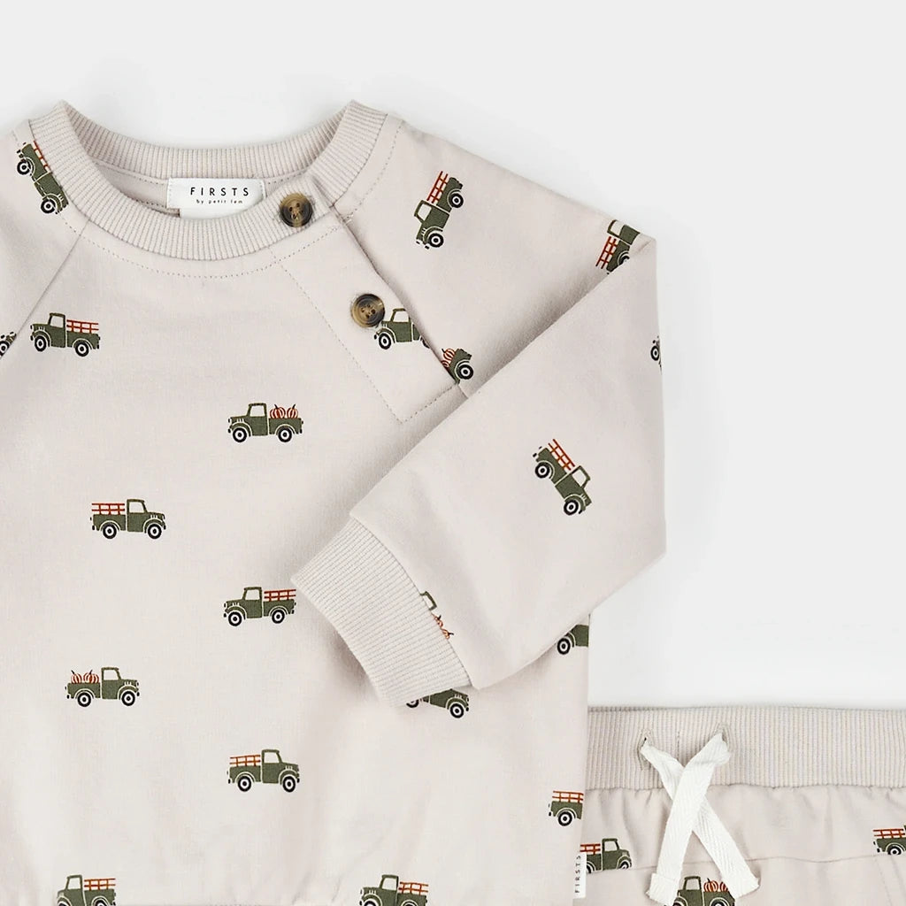 Petit lem - Ensemble cosy - Camions de citrouilles - Beige