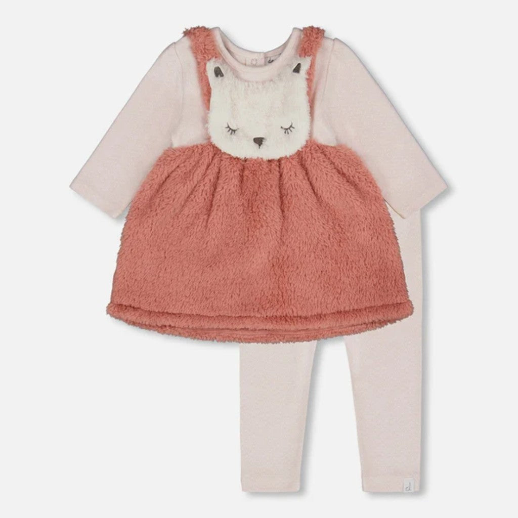 Deux - Robe bi-matière et legging - Petit Chat - Vieux rose