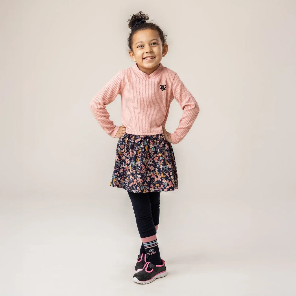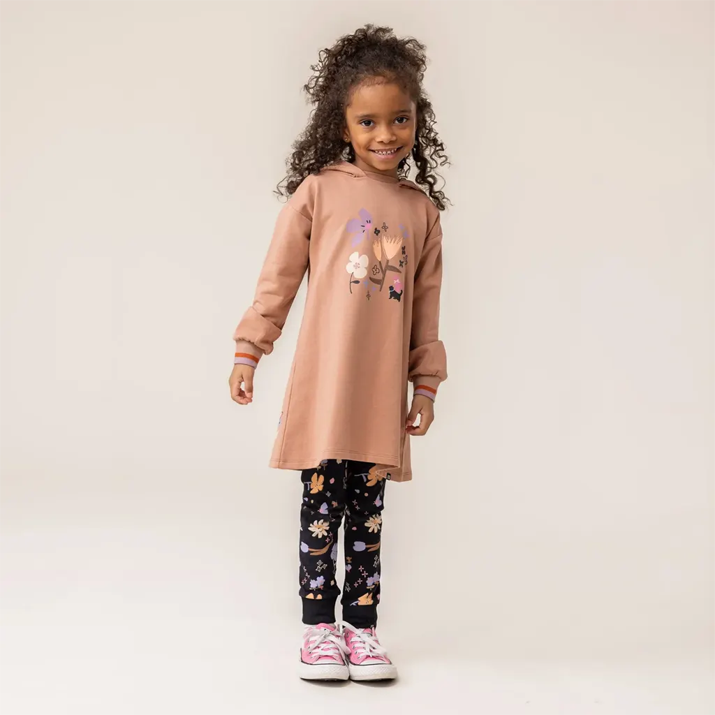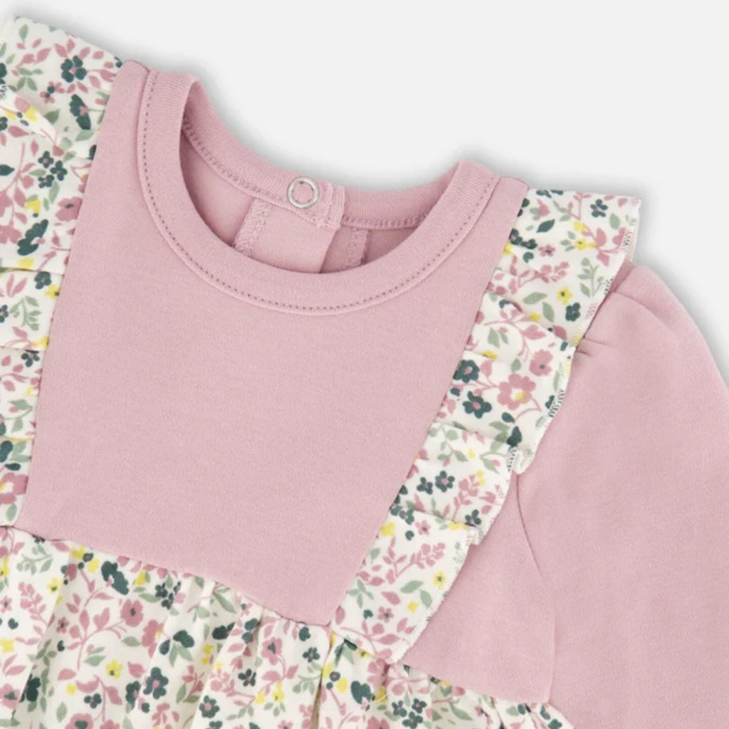Deux - Tunique bi-matière et legging - Floral - Mauve neutre