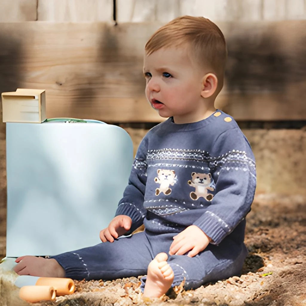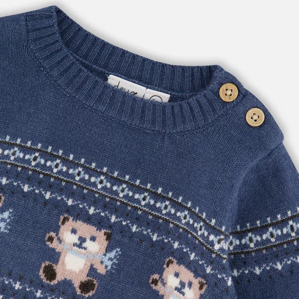 Deux - Ensemble en tricot Jacquard - Ours - Bleu et Gris