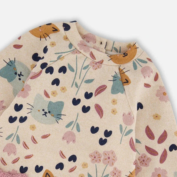 Deux - Robe en molleton scintillant - Chats - Beige