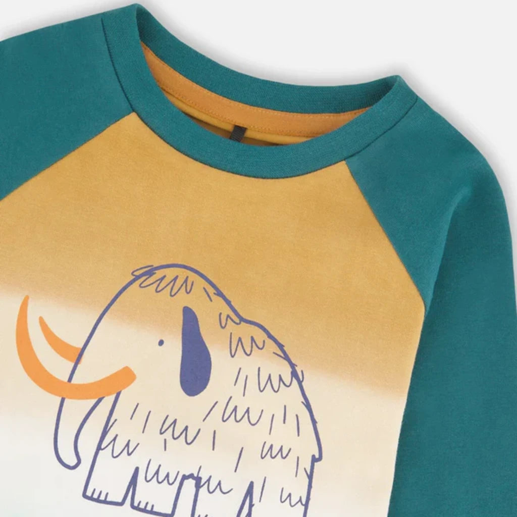 Un dégradé de couleurs et un motif préhistorique amusant font de ce t-shirt un incontournable dans la garde-robe des petits aventuriers. Confectionné en jersey de coton biologique, ce haut est doté d’un corps à effet dégradé, de manches raglan contrastantes, d’un col rond contrasté et d’un mammouth graphique imprimé sur la poitrine.
