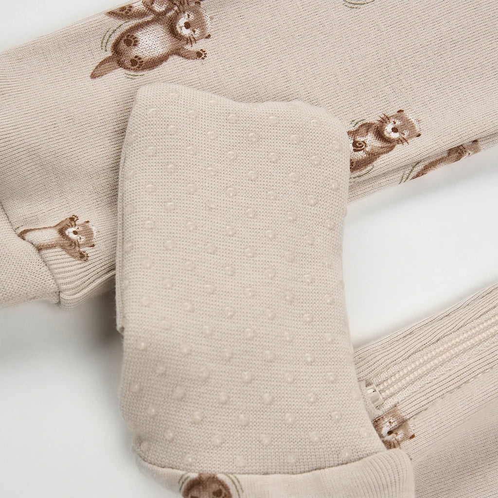 Cette dormeuse douillette en coton biologique est parfaite pour dormir, explorer, ramper ou faire ses premiers pas grâce à sa conception à pieds rabattables. Ce modèle convertible passe facilement d'une dormeuse avec pieds à une version sans pieds, idéale pour jouer ou pour la sieste, tout en prolongeant la durée de vie du vêtement quand bébé grandit. Dotée de poignets côtelés et d'une fermeture éclair à double sens, elle est aussi pratique qu'adorable, surtout avec son imprimé de loutres absolument mignon.
