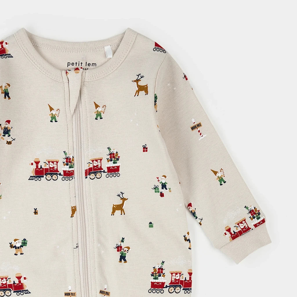 Le temps des Fêtes approche, et il n'est jamais trop tôt pour sortir les pyjamas de Noël! Cette dormeuse crème est parsemée de notre imprimé de l'atelier du père Noël et confectionnée en coton biologique côtelé pour un confort tout doux. Avec ses pieds intégrés et ses poignets côtelés, elle garde les tout-petits bien au chaud pendant qu'ils rêvent au matin de Noël. Un pyjama assorti est disponible pour les plus grands; parfait pour des moments magiques autour de la table du déjeuner.