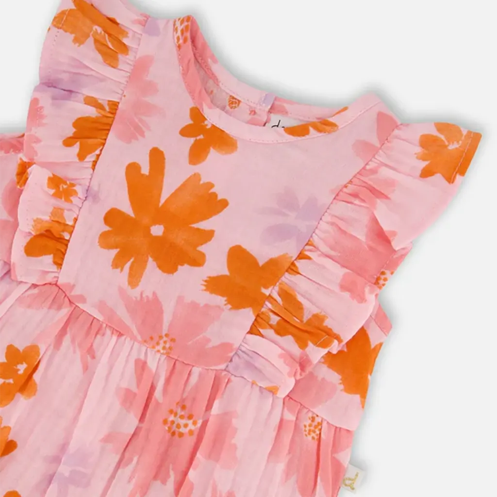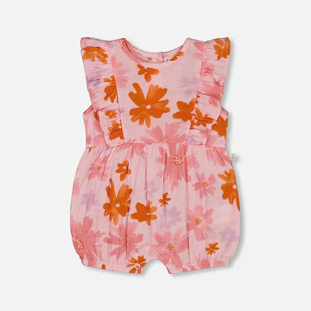 Deux - Romper en mousseline rose - Fleurs Corail