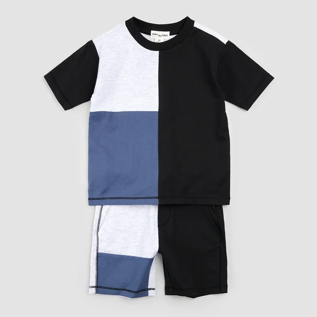 Miles - Ensemble de T-Shirt et Short - Color-Block - Noir/Gris/Bleu