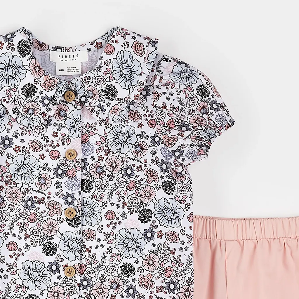 Parfait pour les goûters et les pique-niques, cet ensemble fleuri se compose d'une chemise de style rétro à manches bouffantes, d'un col Claudine et d'un short rose à froufrous coordonné. Doté d'une bande de taille élastique, il est facile à enfiler et à baisser, ce qui encourage votre petite à s'habiller seule et facilite les changements de couches même en déplacement. Un chapeau assorti est disponible dans la même gamme, pour qu'elle soit belle comme un cœur tout en étant protégée du soleil.