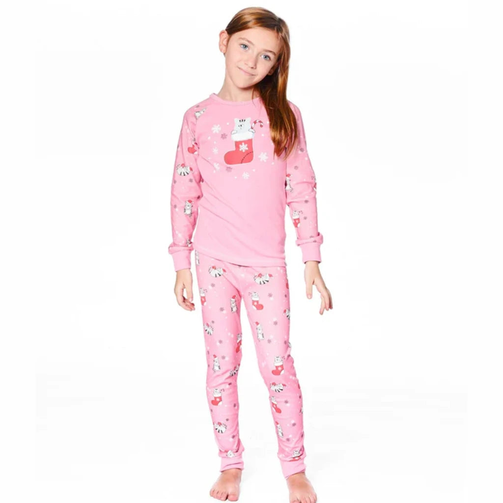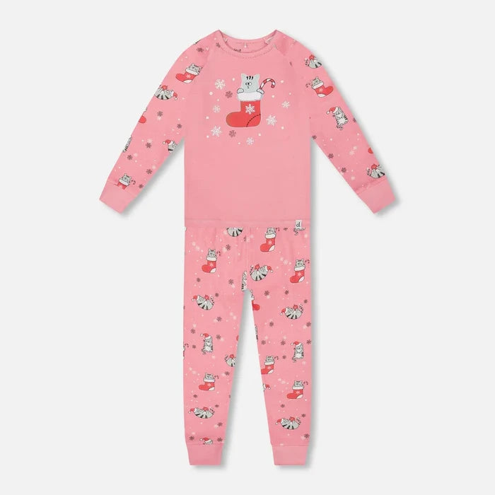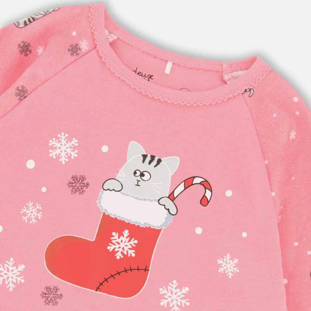 Deux - Pyjama 2pces - Chats dans un bas de Noël - Rose