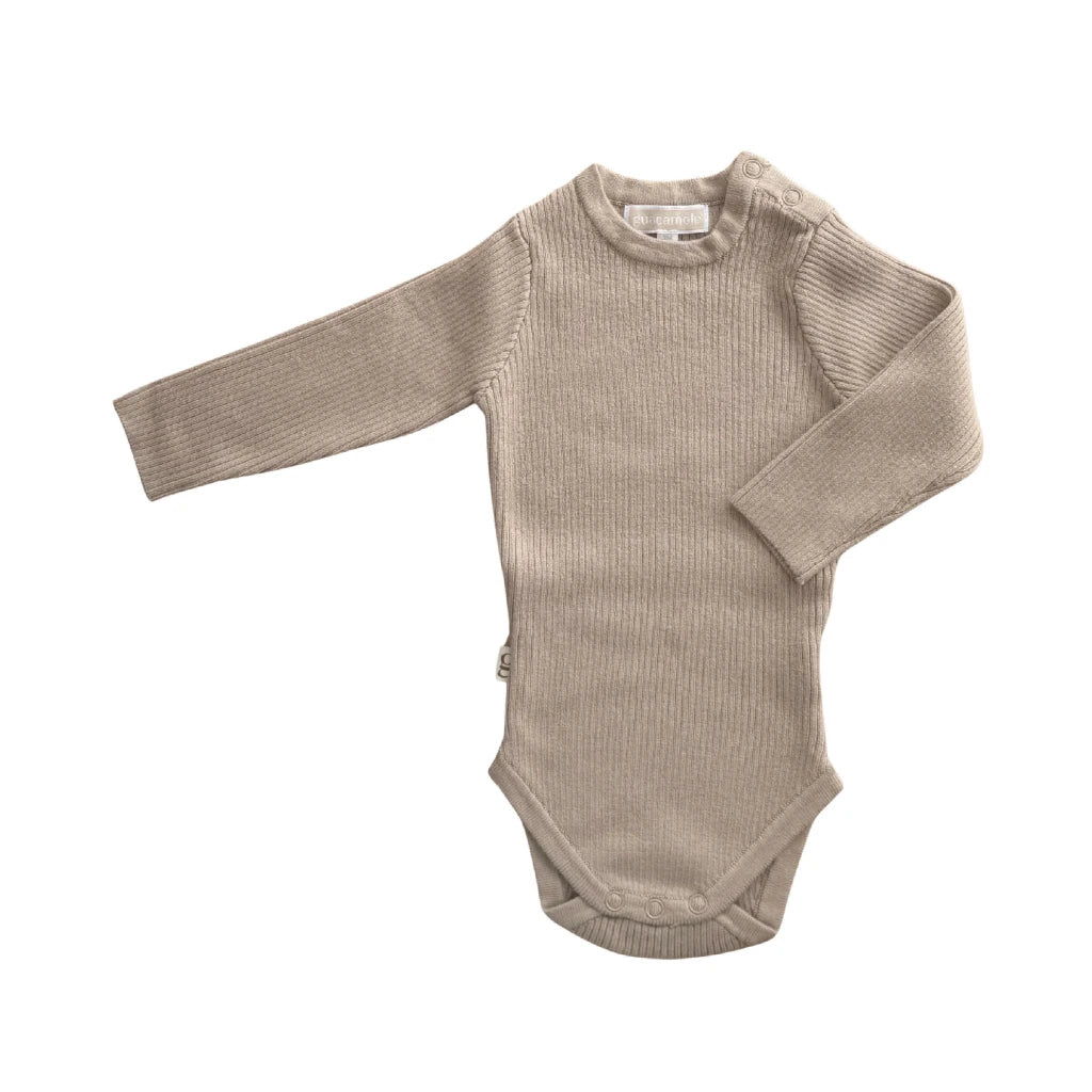 Son design côtelé ajoute une touche de texture moderne et élégante, tandis que la coupe ajustée garantit un maintien tout en confort. Le modèle nouveau-né est équipé de poches pour les mains intégrées, idéales pour éviter les petites égratignures.