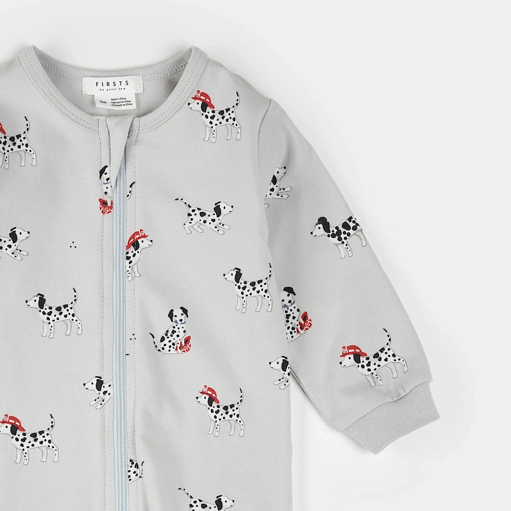 Conçue pour les petits héros en devenir et leurs fidèles acolytes à quatre pattes, cette dormeuse à pieds arbore un adorable imprimé de dalmatiens pompiers. Fabriquée en coton biologique léger et respirant avec juste ce qu'il faut d'élasticité, elle garde les tout-petits bien au chaud, pendant les missions nocturnes et les câlins du matin. Grâce à sa fermeture éclair à double sens, les changements sont simples et rapides. Les poignets côtelés et les pieds intégrés assurent un ajustement confortable.