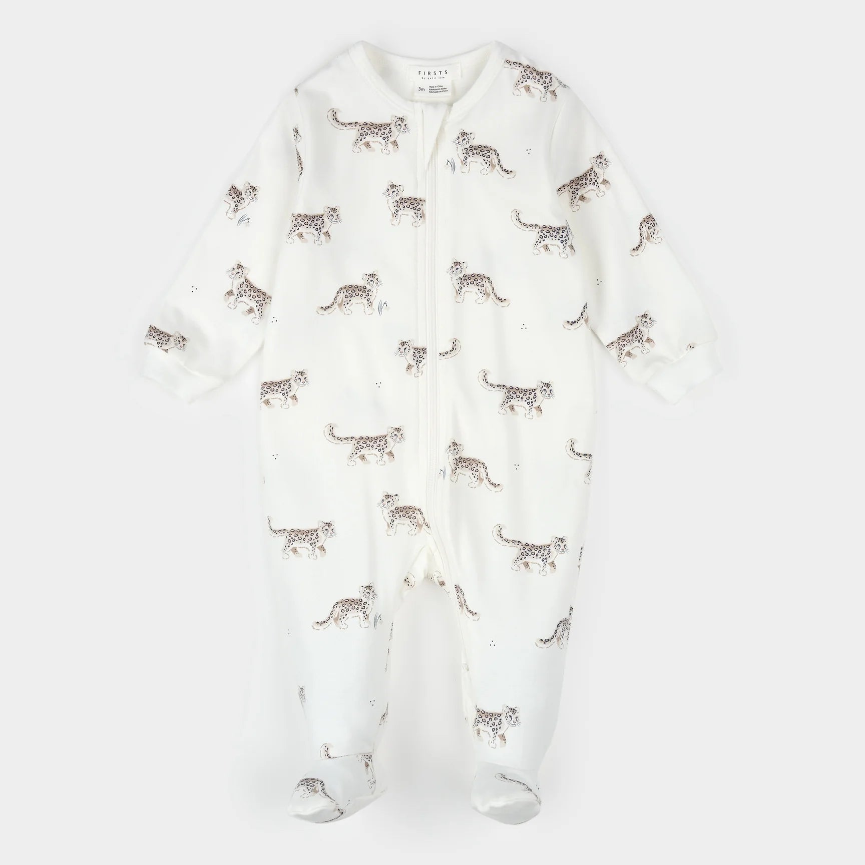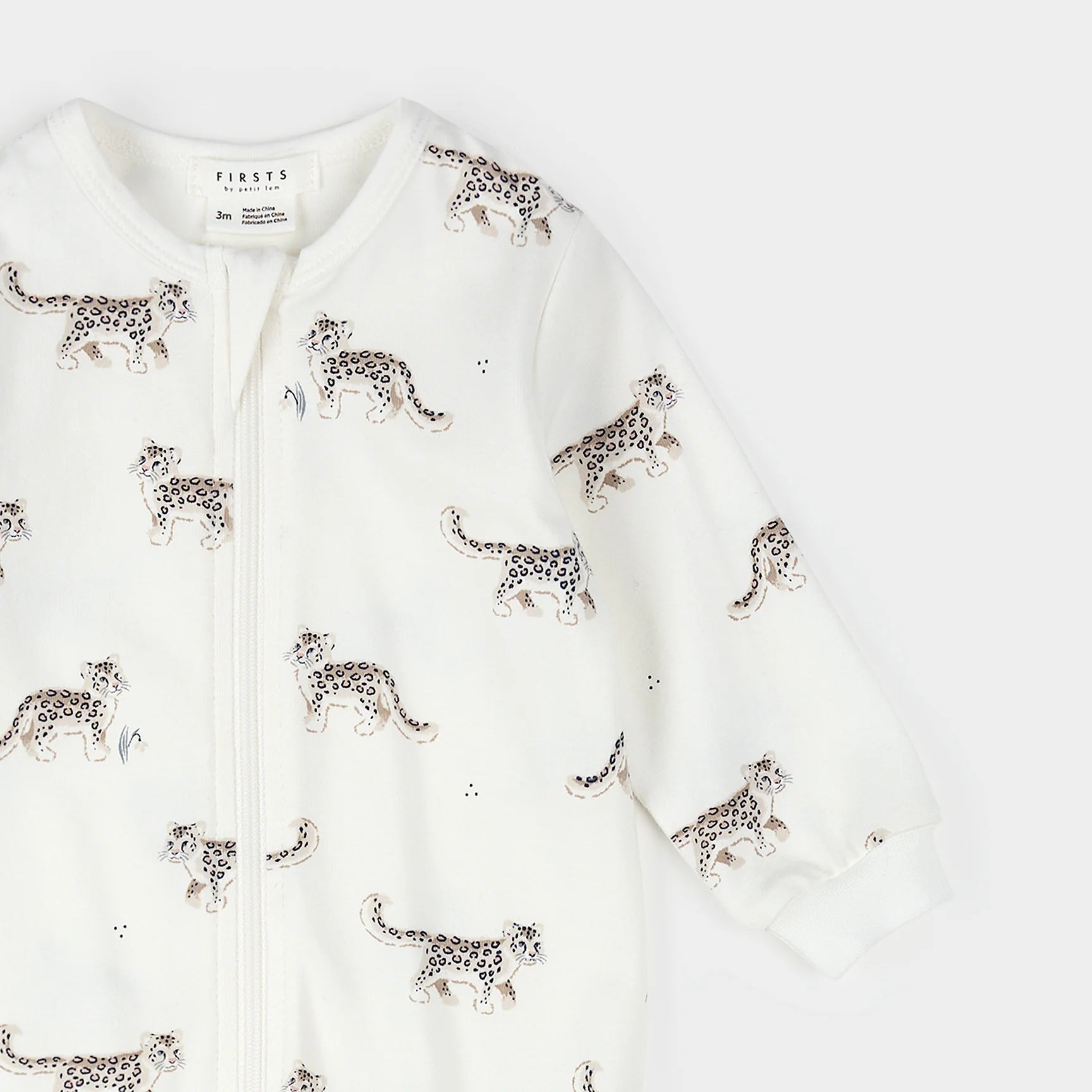 Câlinez votre petit trésor dans cette dormeuse à pieds à imprimé de léopard des neiges tout doux. Confectionnée en jersey de coton biologique, elle est délicate sur sa peau et la garde bien au chaud lors des nuits plus fraîches. La fermeture éclair à double sens est conçue pour faciliter le changement de couche ou l'habillage, tandis que les poignets côtelés permettent aux petites mains de rester libres pour explorer.