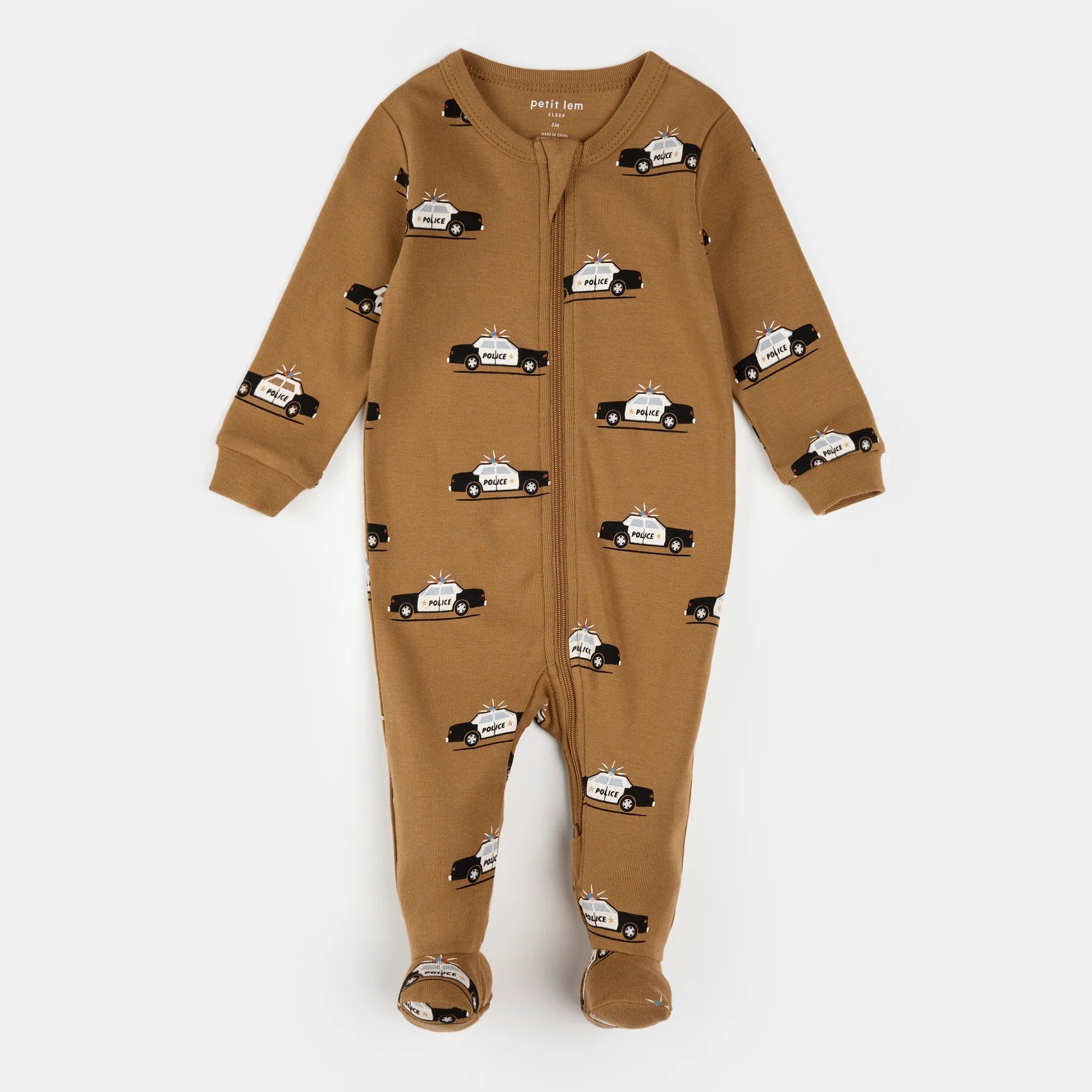 Laissez-les foncer vers une nuit de rêves avec cette dormeuse à imprimé de voitures de police. Parfaite pour se blottir avec papa après le travail ou pour attraper quelques heures de sommeil après une journée bien remplie à combattre le crime. Grâce à ses pieds intégrés et ses poignets côtelés, cette dormeuse offre un ajustement confortable, parfait pour les garder bien au chaud toute la nuit. La fermeture éclair à double sens rend les changements rapides et faciles, et un pyjama assorti est disponible pour les grands frères.