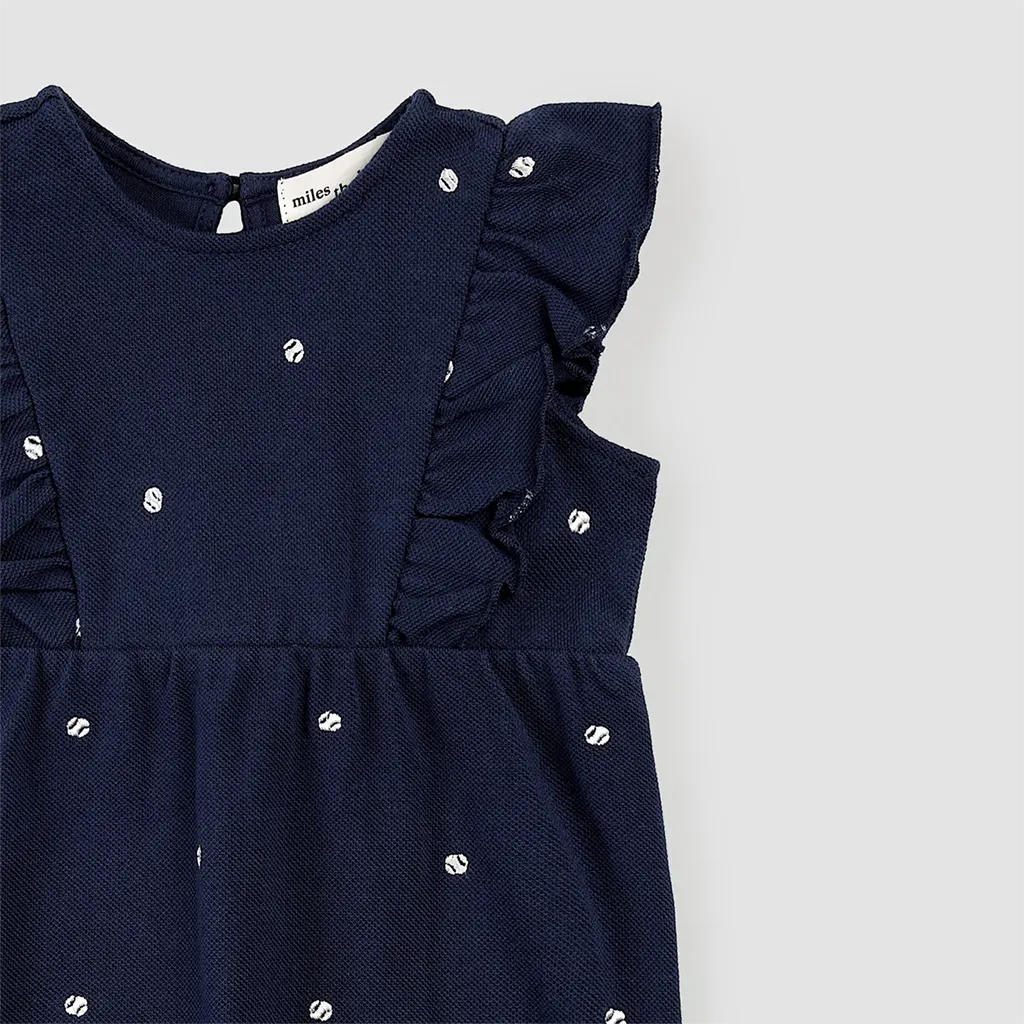 Cette barboteuse intemporelle est parfaite pour s'asseoir au bord du court pendant que les frères et sœurs plus âgés jouent au tennis. Avec le motif de balle de tennis brodée, votre petite dernière peut soutenir l'équipe de la manière la plus charmante qui soit. Et la barboteuse convient tout aussi bien aux bons repas en famille. Les élastiques au niveau des jambes et de la taille assurent un ajustement confortable, tandis que la fermeture et les boutons-pression le long des jambes permettent un changement rapide et un habillage facile. Fabriquée en coton biologique, elle est confortable, cool et totalement chic.