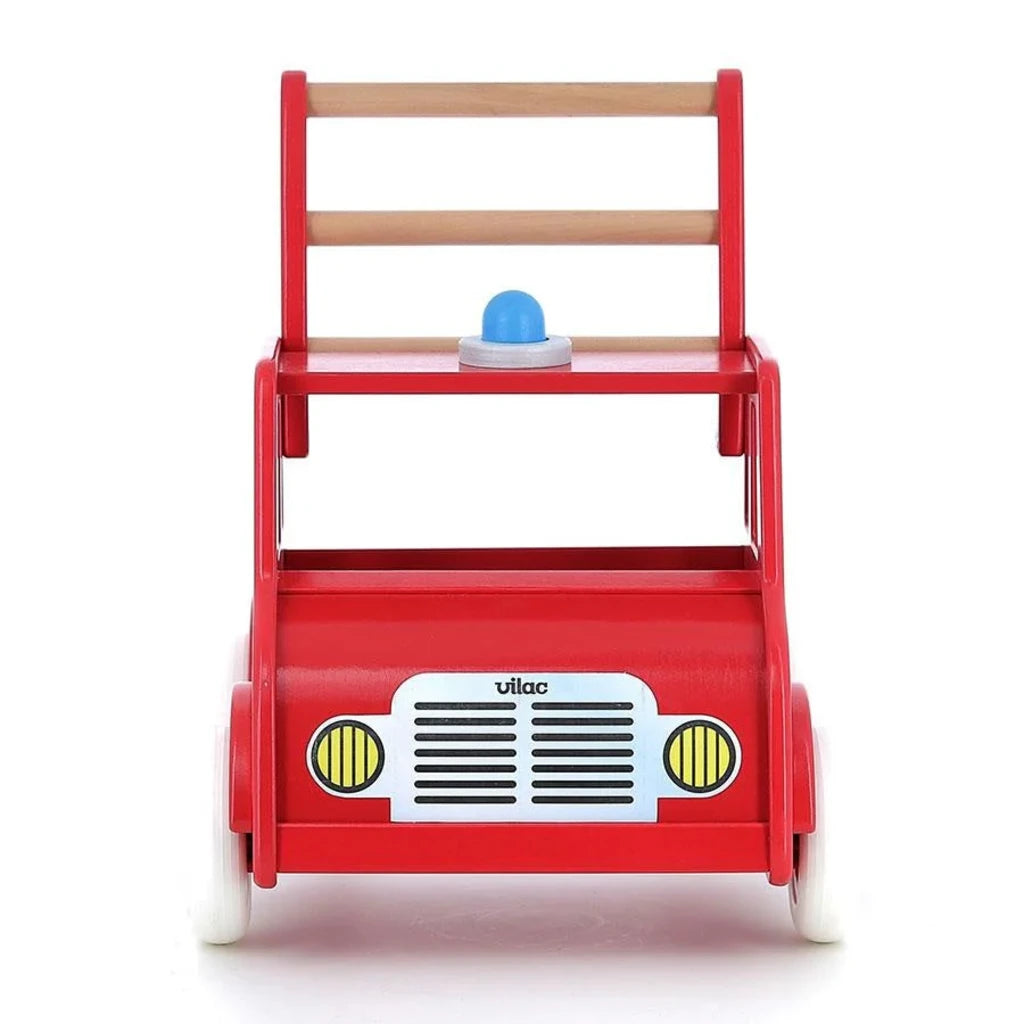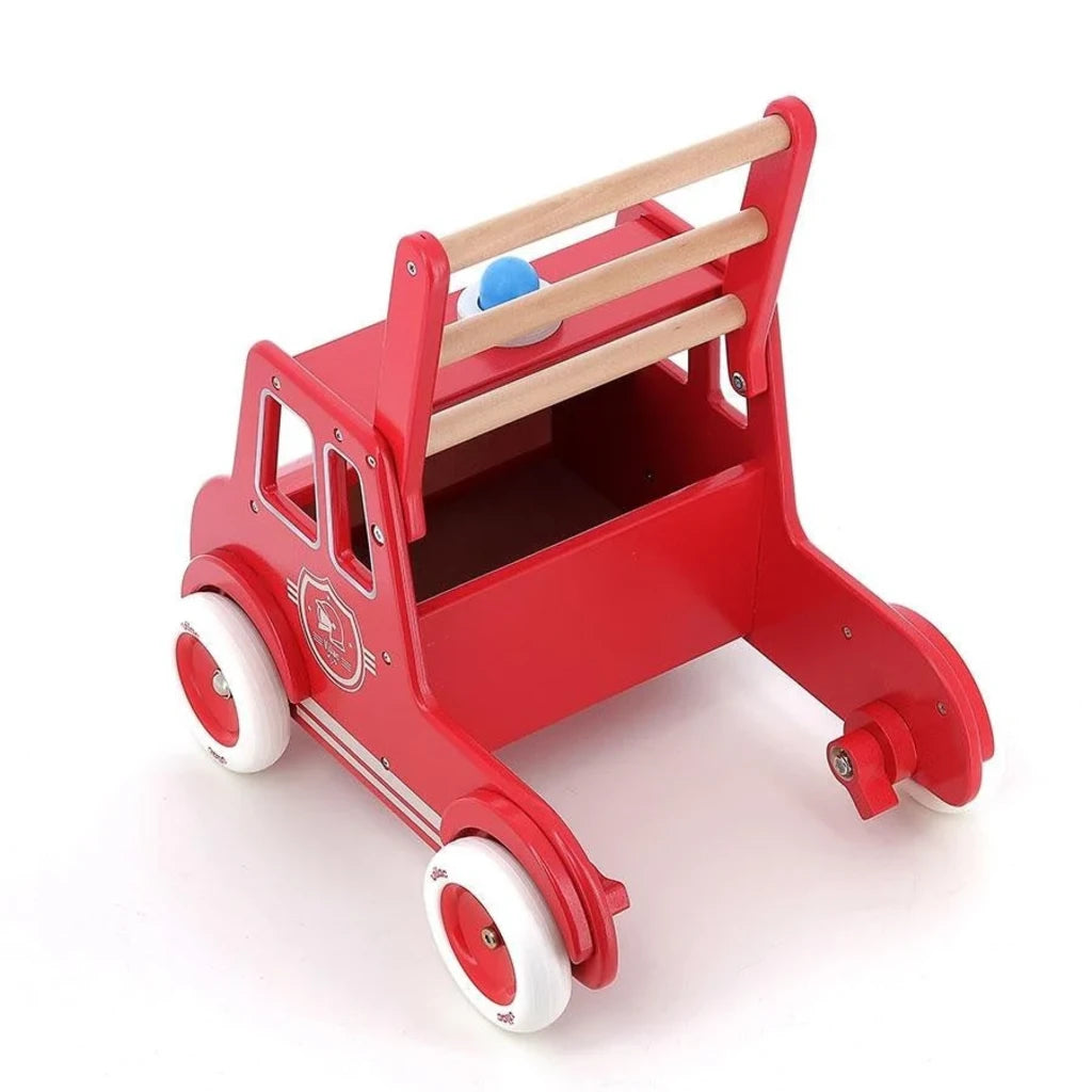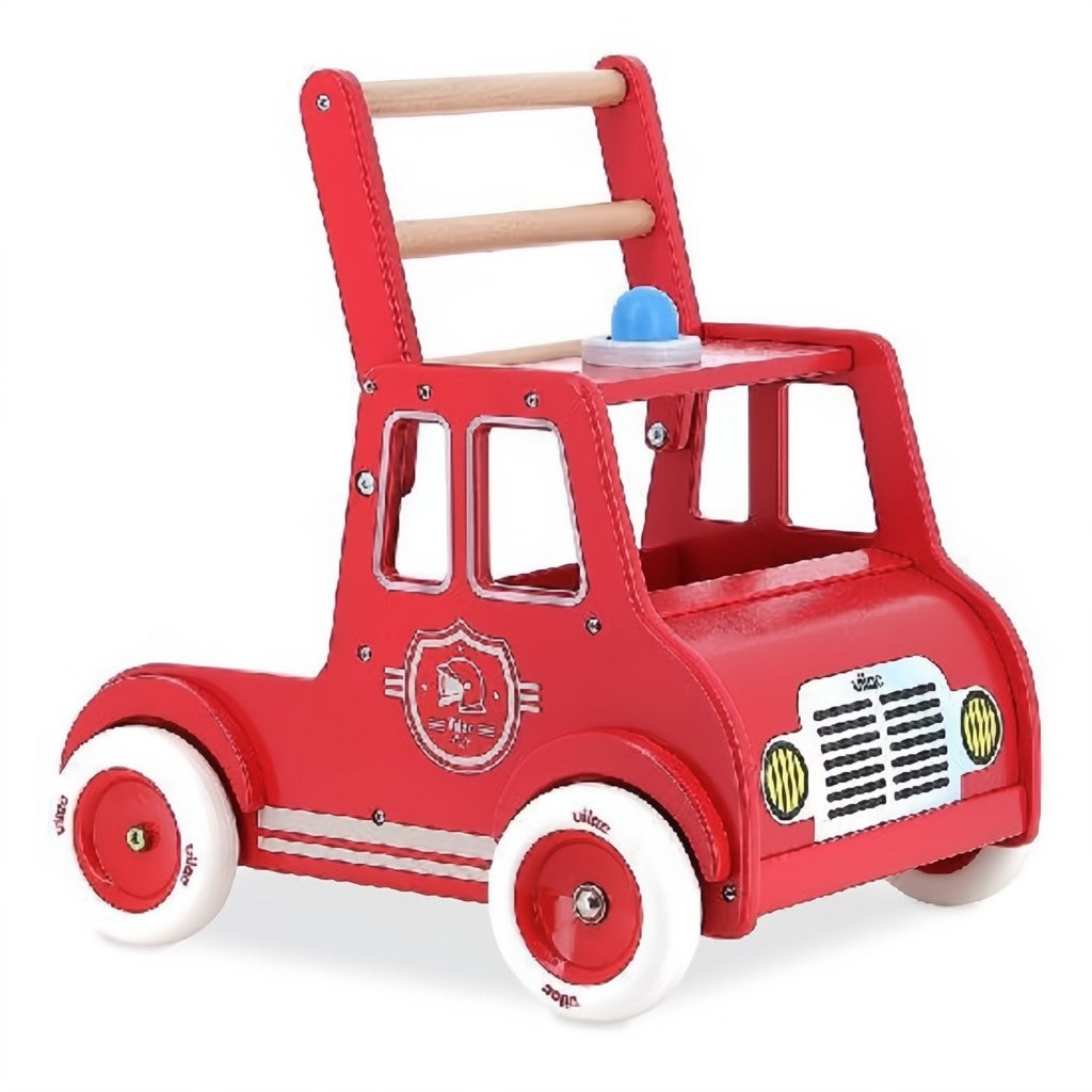 Avec son allure de camion de pompiers vintage, ce chariot en bois est idéal pour les premiers pas des tout-petits. Grâce à ses roues silencieuses et sa stabilité testée en laboratoire, les enfants peuvent se déplacer en toute sécurité et partir à l'aventure ! Un système de freinage installé sur les roues arrière permet de les bloquer plus ou moins pour éviter que les petits ne contrôlent leur allure. Et pour annoncer son arrivée aux peluches, il suffit d'appuyer sur le petit klaxon en forme de gyrophare !