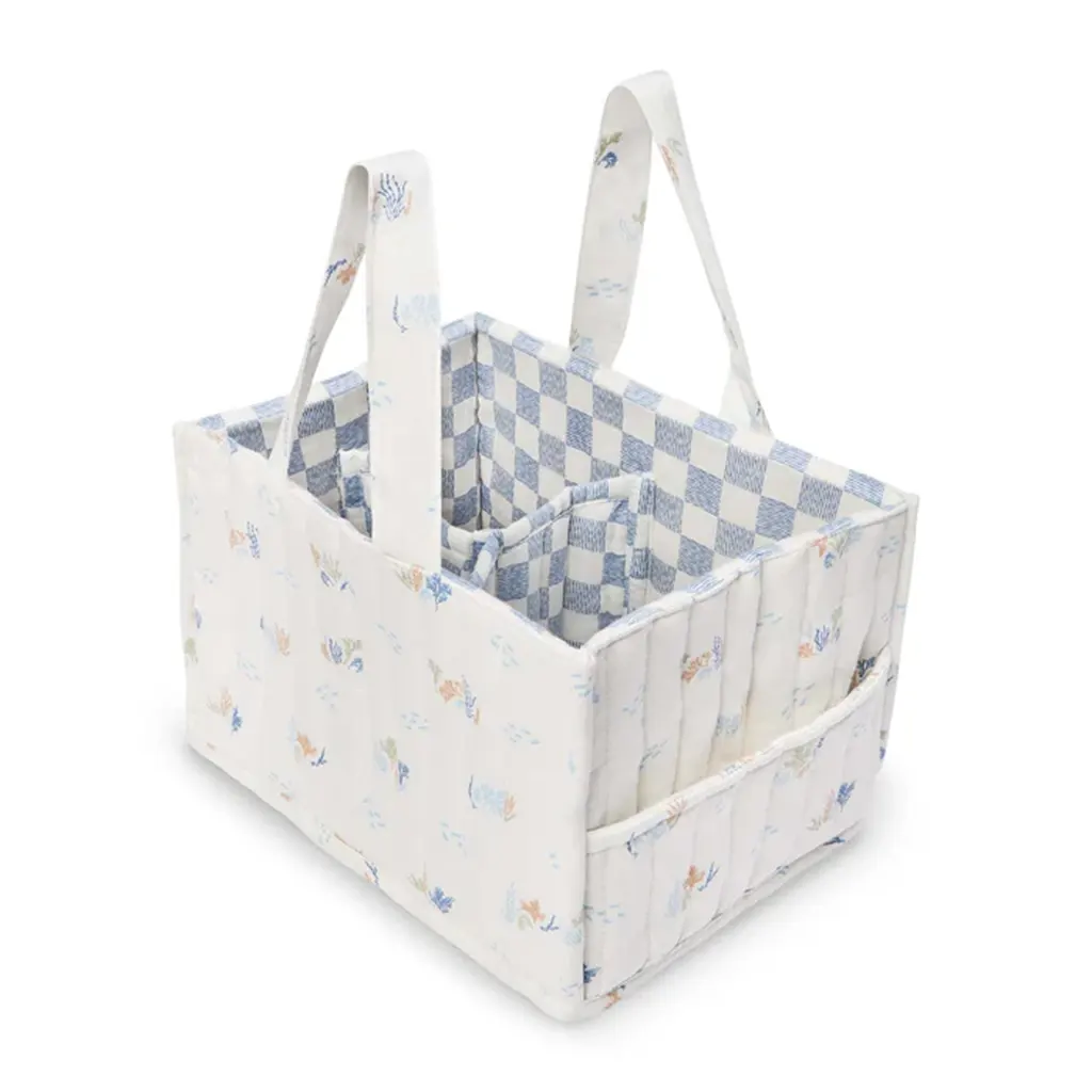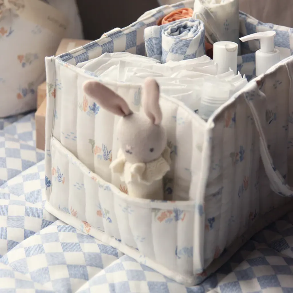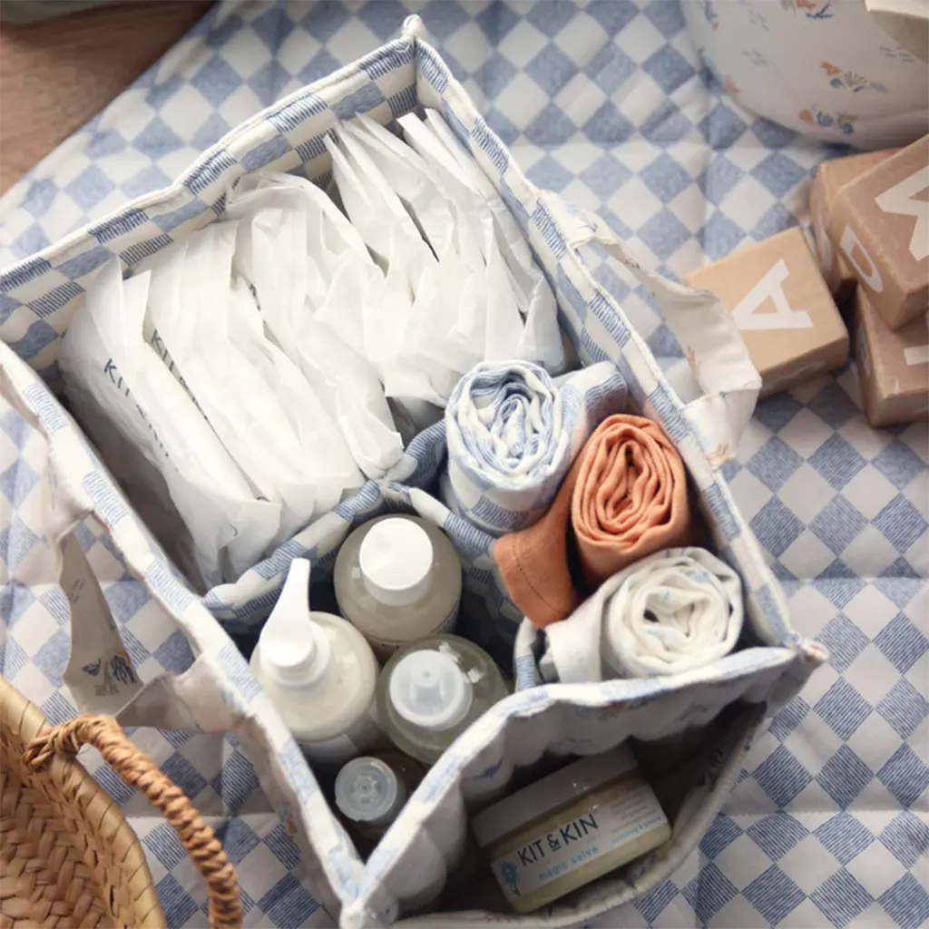 Le complément parfait à votre poste de changement pour bébé. Notre panier à couches matelassées dispose de 2 poches extérieures et de 3 compartiments intérieurs, parfaitement dimensionnés pour ranger couches, crèmes et lingettes. Les poignées rendent le caddy portable afin que vos essentiels de changement pour bébé puissent toujours être à portée de main.