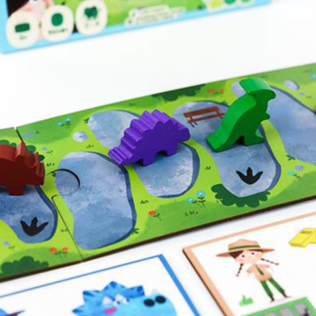 Chaque joueur doit gérer la progression de 2 pions : son pion Dino ET son pion Maître. Pour avancer, les joueurs lancent le dé et déplacent au choix leur pion Dino ou leur pion Maître. Pour gagner la partie, seul le pion Dino compte et il serait logique de n’avancer que ce pion-là, MAIS c’est là que Billy, la gardienne du parc, intervient ! Billy est stricte et ne supporte pas que les Dinos soient trop éloignés de leur Maître.