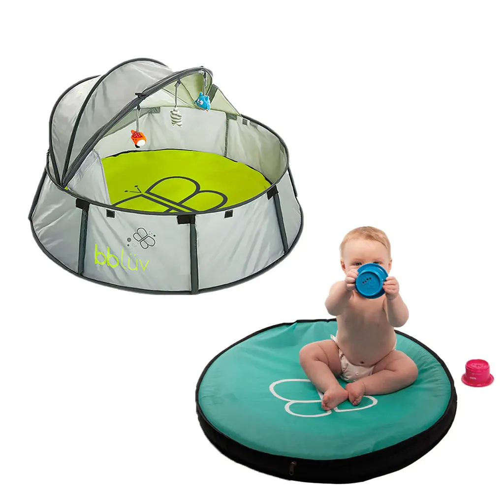 Compacte et légère, la Nidö est parfaite pour la plage, le parc ou la salle de jeux ! Elle protège la peau de bébé des rayons nocifs UVA et UVB du soleil, du vent et du sable. Le système de déploiement rend le montage facile et rapide. La Nidö est offerte avec un sac de transport pratique pour la plage ou le parc et se range facilement dans vos bagages.