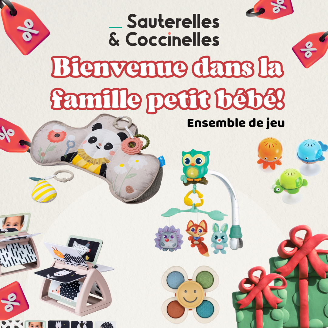 Accueillez bébé avec cette collection spécialement conçue pour ses premiers mois! Des jouets sensoriels aux accessoires d'éveil, cet ensemble accompagne le développement moteur et sensoriel dès la naissance avec douceur et stimulation adaptée.