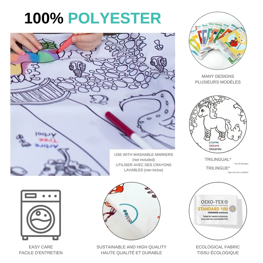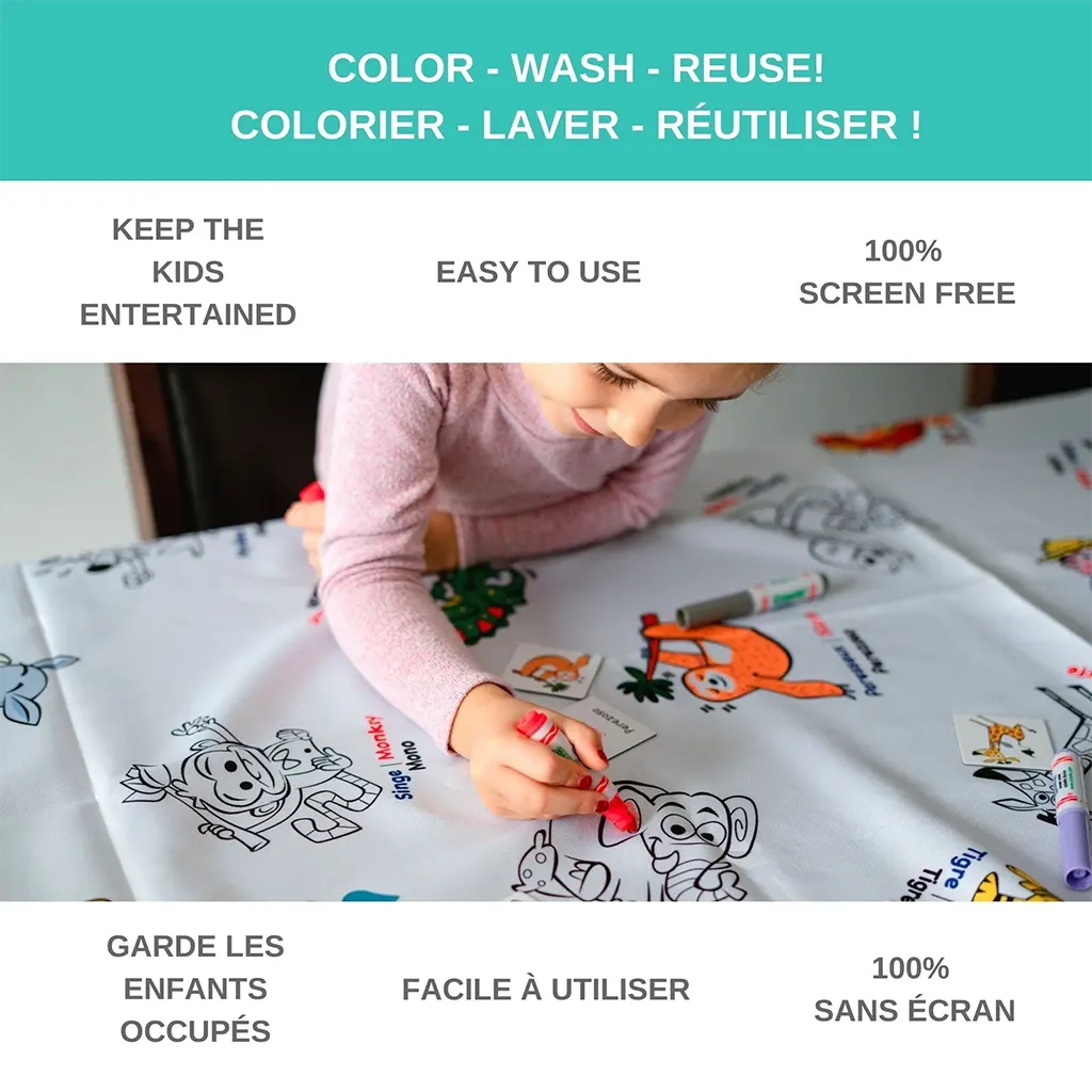 L'encre des marqueurs peut également traverser la nappe c'est pourquoi il est important de mettre une nappe en plastique ou une autre nappe sous la nappe à colorier, car même si les marqueurs sont lavables, il peut y avoir des surfaces moins lavables que d'autres. Nous ne voudrions pas que le coloriage tache vos tables ou meubles.