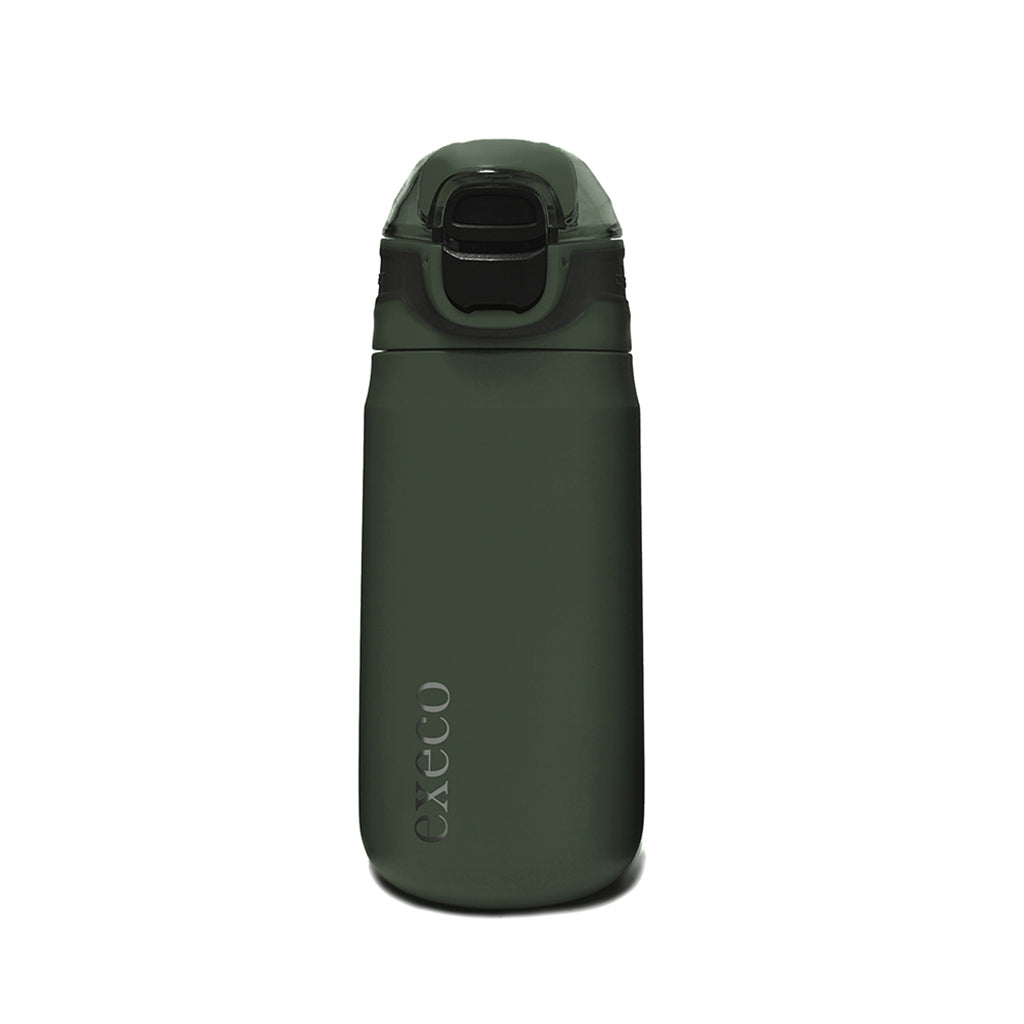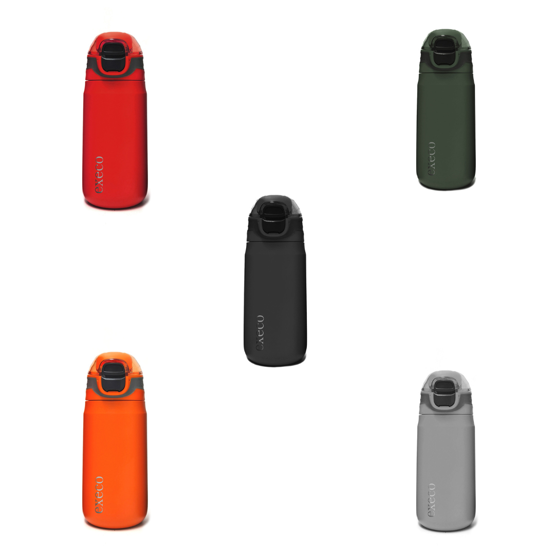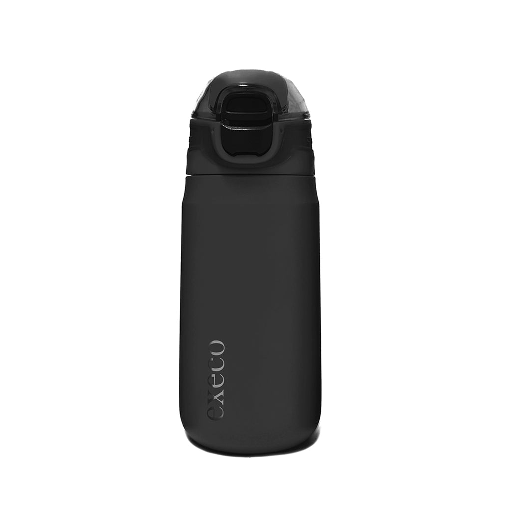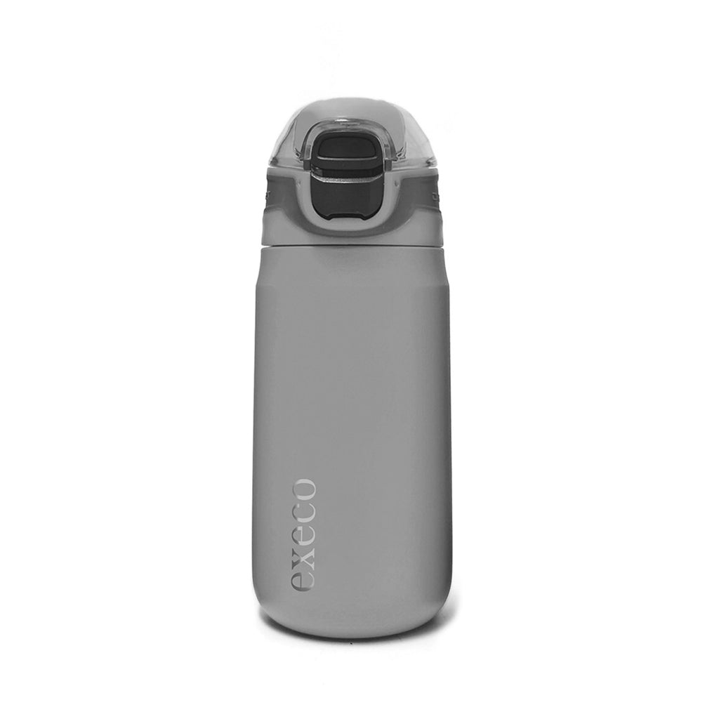 Bouteille isotherme de 410ml en acier inoxydable léger. Couvercle facile à ouvrir avec bouton poussoir et paille escamotable en silicone.
