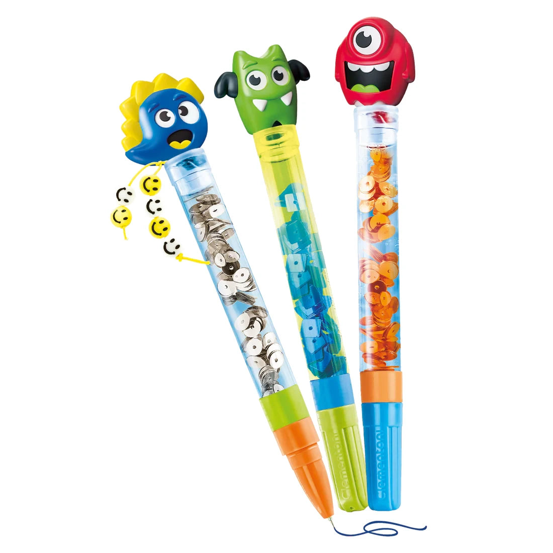 Un coffret créatif original qui permet d'assembler 3 stylos et de les personnaliser avec différentes décorations sur le thème des monstres. Le coffret contient 3 stylos à assembler, 4 encres de couleurs