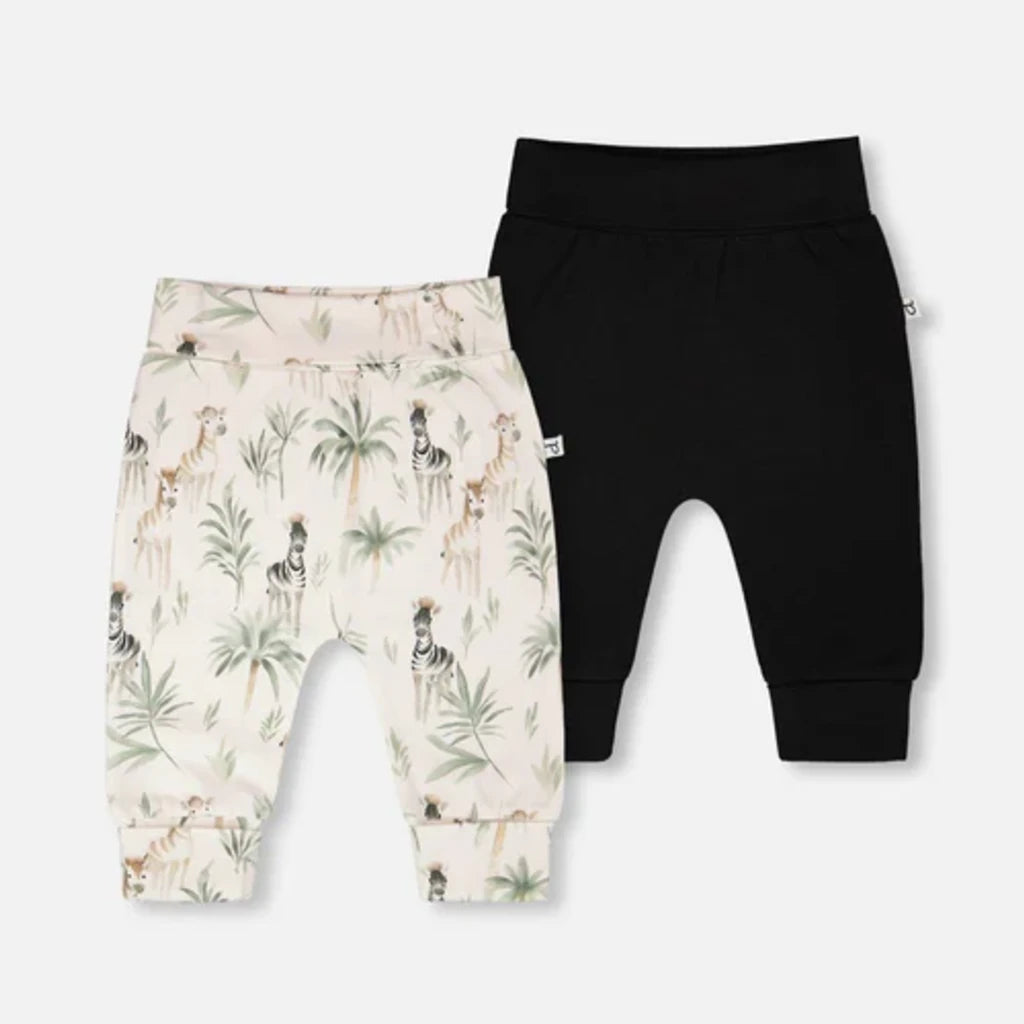 Deux fois plus de style et deux fois plus de confort — ce lot de 2 pantalons évolutifs en jersey de coton biologique beige à imprimé de zèbres est pensé pour les petits garçons toujours en mouvement. Grâce à leur taille repliée et à leurs chevilles à revers pliés, ces pantalons s’adaptent à sa croissance pour un ajustement pratique à chaque étape. Réalisés en jersey de coton biologique doux et extensible, l’un séduit par la classe de sa couleur noire tandis que l’autre amuse avec son imprimé intégral de zèbres.