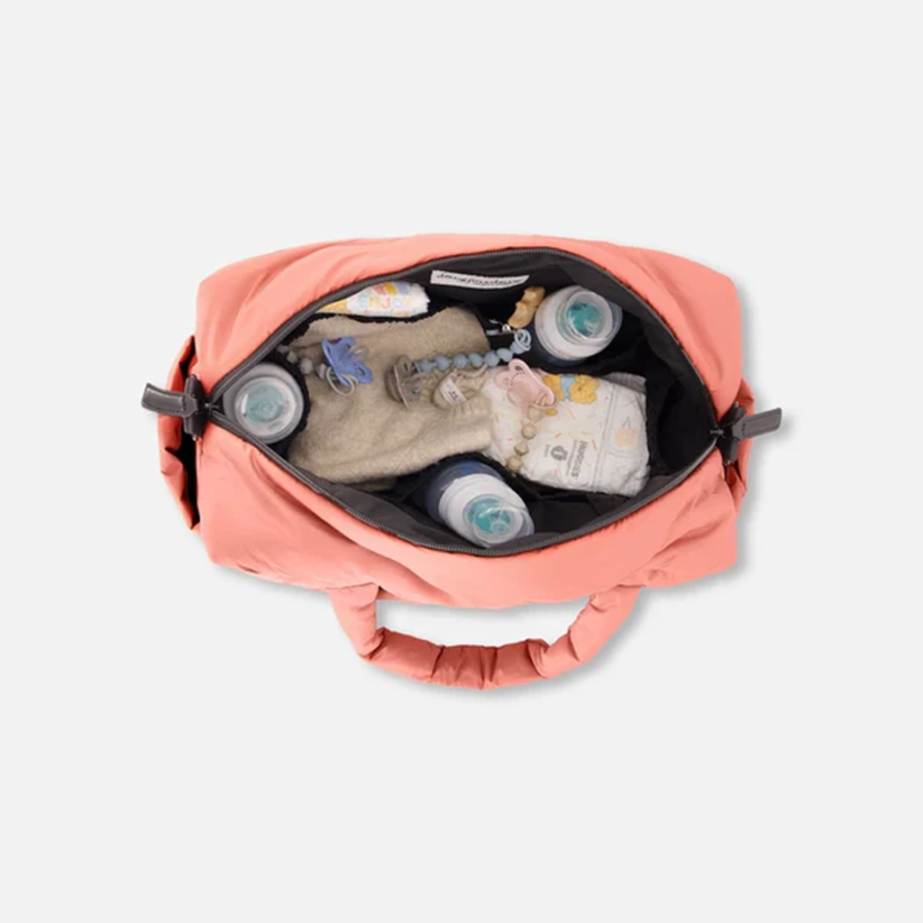 Emportez tous les indispensables pour votre bébé partout où vous allez avec notre sac à couches rose cendré. Ce sac pour maman résistant à l'eau est ultra polyvalent avec des poches intérieures élastiques pour les biberons, des poches latérales, des poches intérieures et extérieures à fermeture éclair, ainsi que des sangles pour poussette. Il est doté d'une bandoulière détachable pour le porter sur l'épaule et comprend une grande poche avec un tapis à langer lavable pour rendre les changements de couche en déplacement plus faciles que jamais !