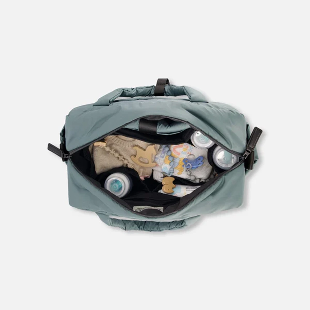 Emportez tous les indispensables pour votre bébé partout où vous allez avec notre sac à couches vert sauge. Ce sac pour maman résistant à l'eau est ultra polyvalent avec des poches intérieures élastiques pour les biberons, des poches latérales, des poches intérieures et extérieures à fermeture éclair, ainsi que des sangles pour poussette. Il est doté d'une bandoulière détachable pour le porter sur l'épaule et comprend une grande poche avec un tapis à langer lavable pour rendre les changements de couche en déplacement plus faciles que jamais !