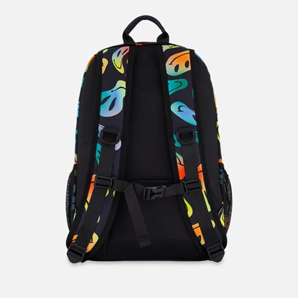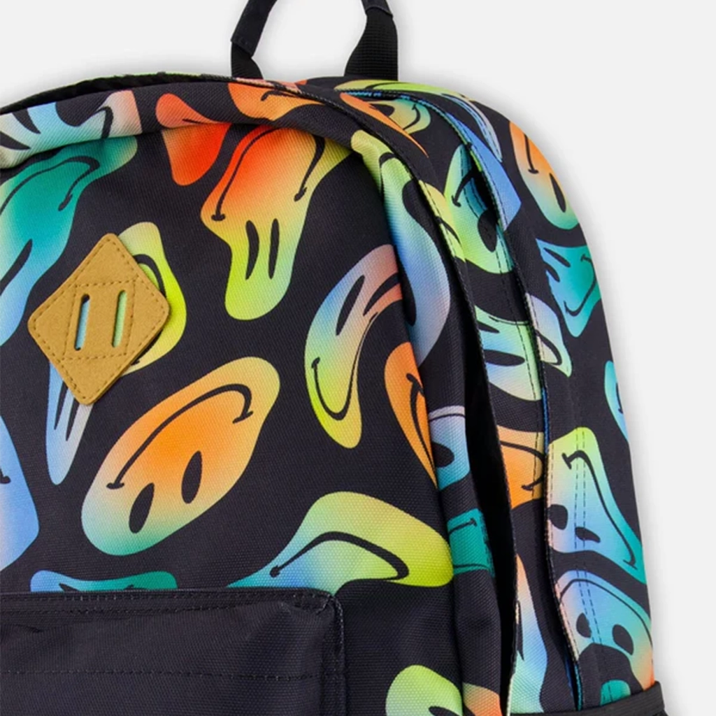 Doté de deux grands compartiments et d’une pochette intérieure pour une tablette ou un ordinateur portable de 15 pouces, ce sac d’école à imprimé de bonhommes sourire est conçu pour transporter tout le matériel scolaire essentiel. Confectionné en tissu oxford à partir de bouteilles en plastique recyclées, ce sac à dos écoresponsable comprend une poche latérale pour bouteille d’eau, une poche zippée à l’avant pour les petits objets, et un fond renforcé pour plus de solidité et de durabilité.