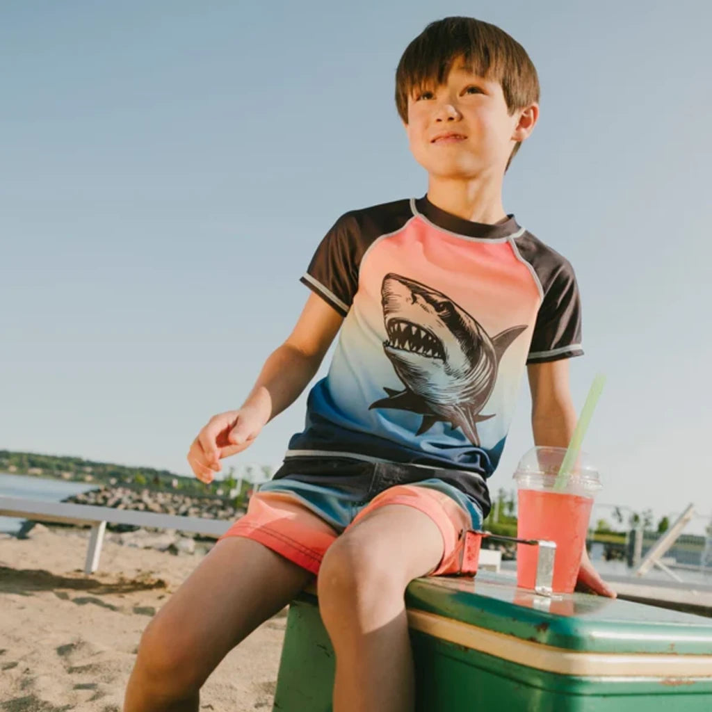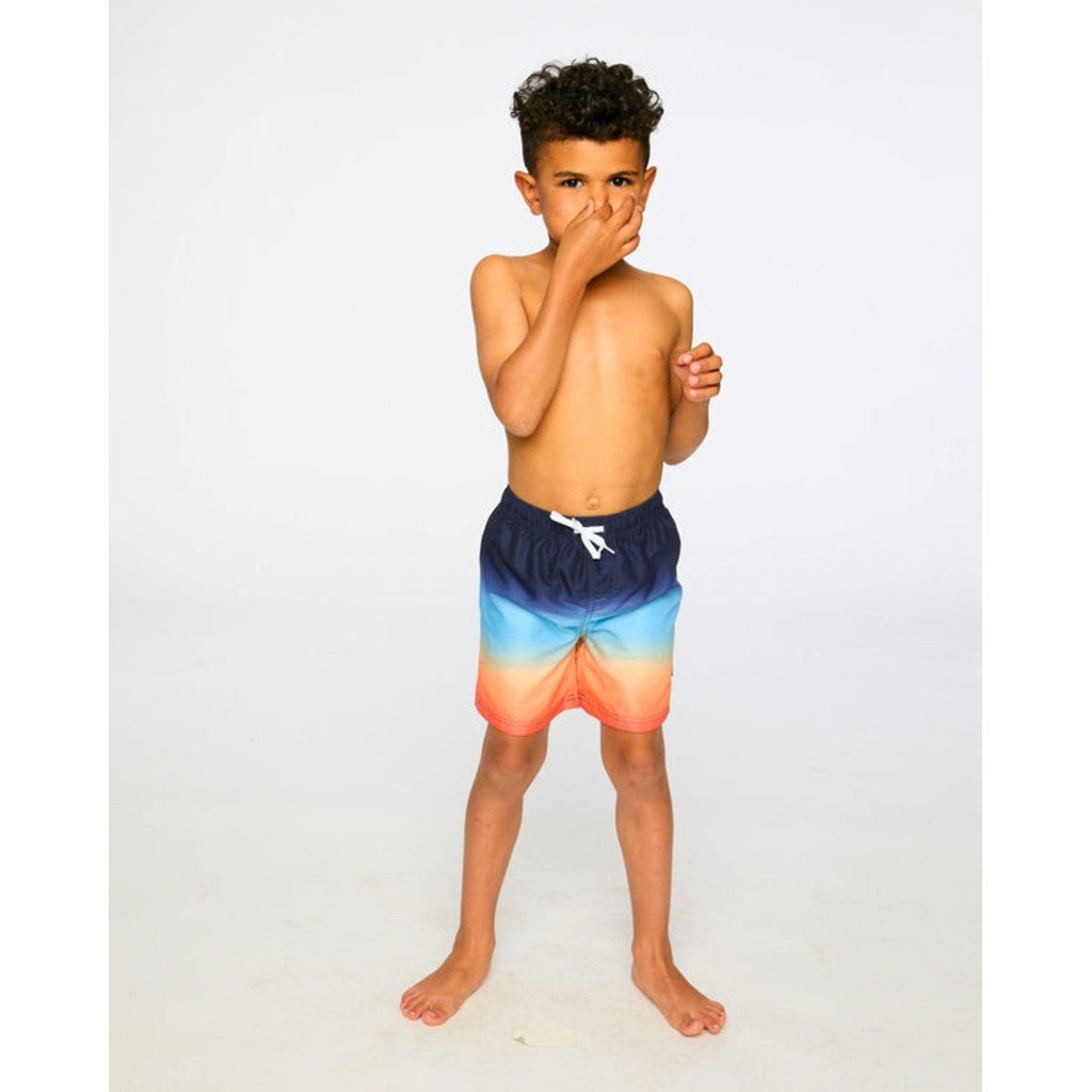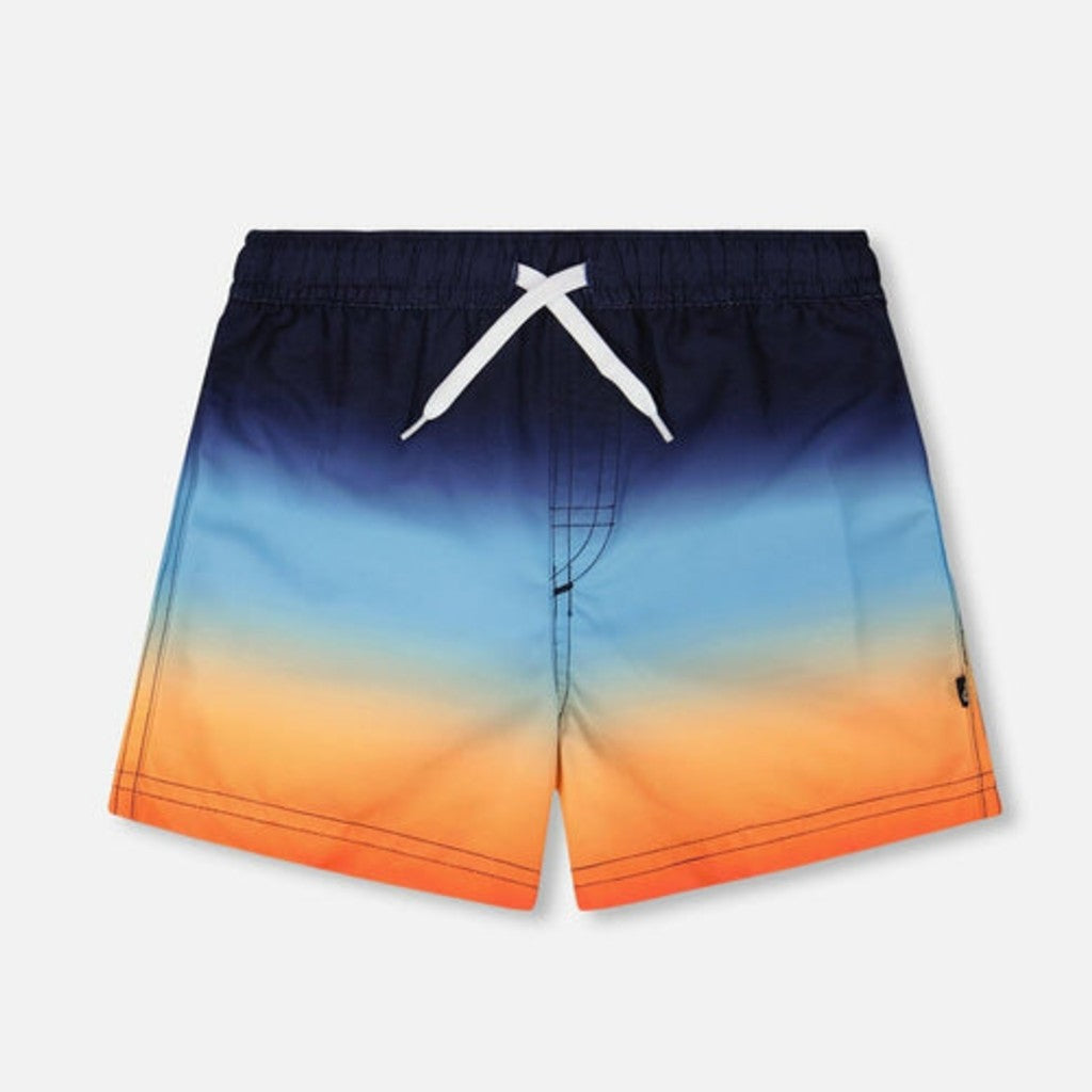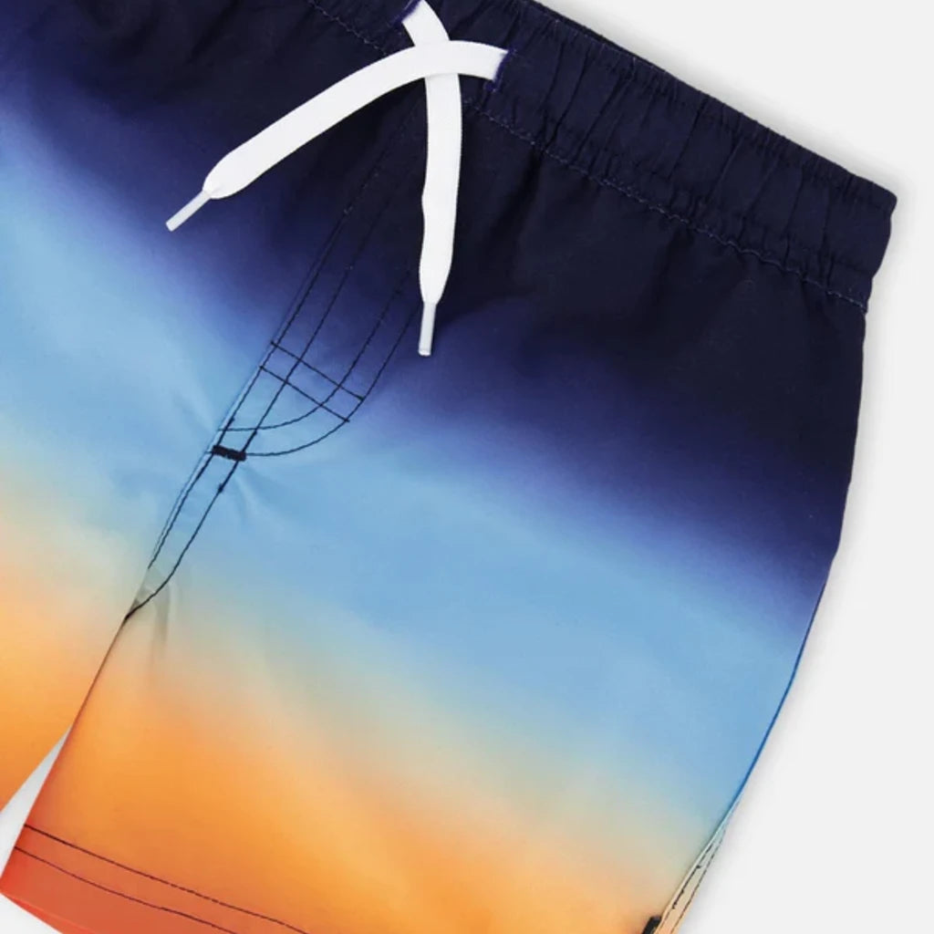 Notre short de bain en dégradé bleu et orange apporte une touche éclatante aux journées d’été. Ce short au-dessus du genou en polyester recyclé léger a un effet ombré vibrant allant du bleu profond à l’orange lumineux, avec une doublure en maille respirante. Sa taille élastique et son cordon ajustable assurent confort et maintien pour toutes les aventures aquatiques.