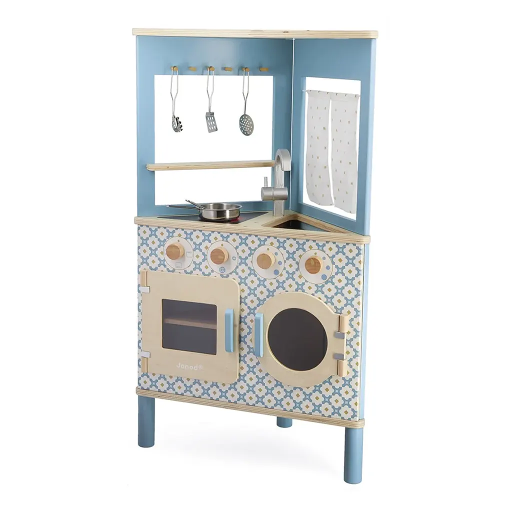 Permet de développer l'imagination de votre enfant et des moments de partage en famille. Jouet d'imitation en bois pour les enfants, à partir de 3 ans. Nous avons imaginé cette cuisine TRIO aux beaux volumes, pour de petits espaces. Sa forme unique et maline permet aux enfants de jouer tout autour, et offre aux parents la possibilité de lui trouver facilement une place dans un coin ! De jolis motifs carreaux de ciment et des couleurs douces, indispensables pour coller aux tendances actuelles !