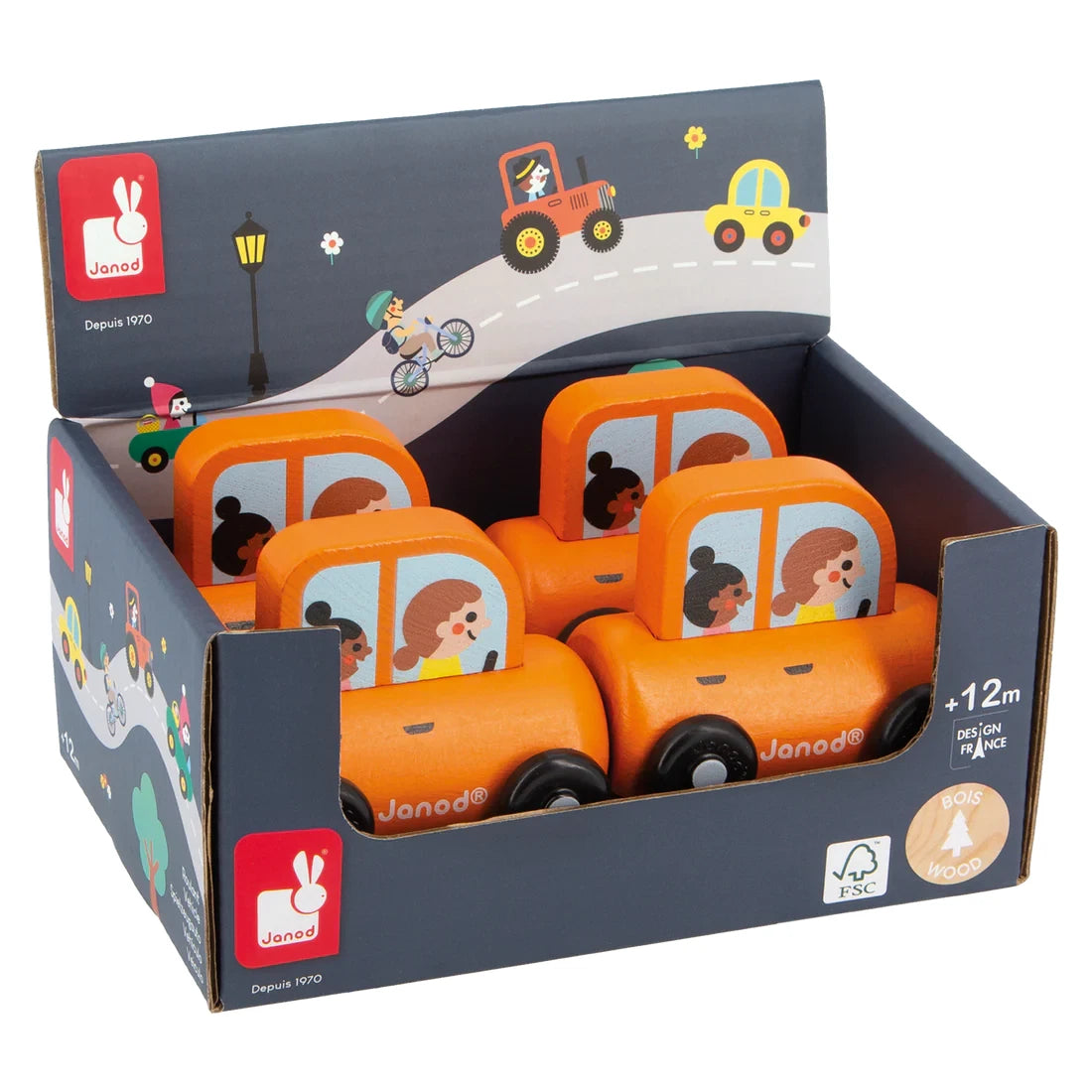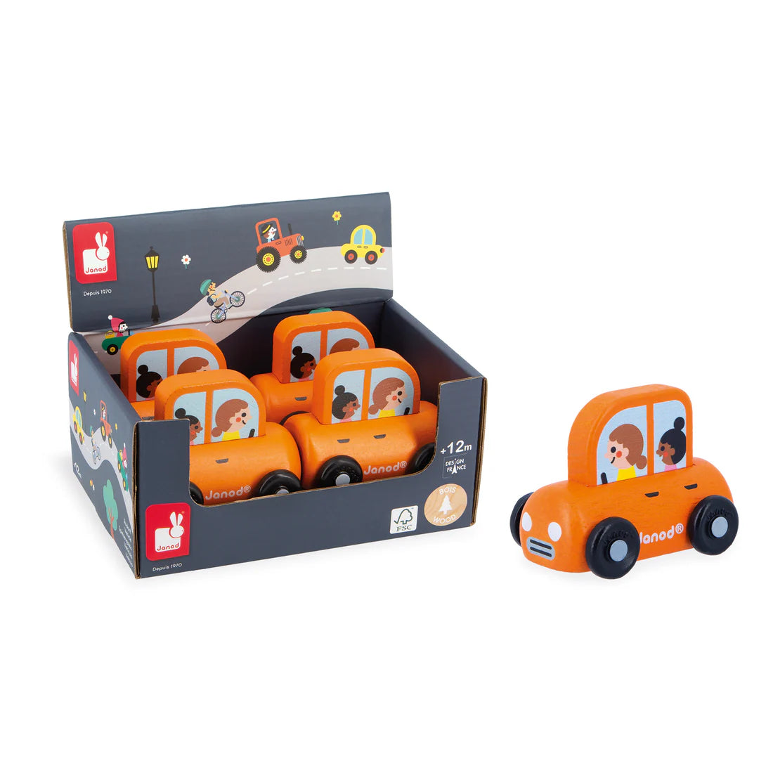 La Voiture familiale en bois Ville – Cross Roads de Janod est un jouet en bois conçu pour les enfants dès 12 mois. Cette petite voiture orange est facile à prendre en main grâce à sa forme étudiée, permettant aux tout-petits de la saisir par le haut pour la faire rouler. Elle est idéale pour inventer de nombreuses histoires en ville, favorisant ainsi le développement de l'imagination et de la motricité.