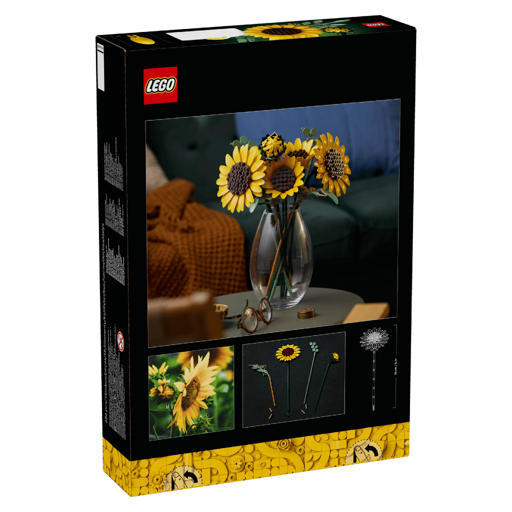 Laissez votre créativité s’épanouir avec l’ensemble de construction LEGO® Botanicals Le bouquet de tournesols pour adultes. Ce magnifique bouquet LEGO comprend 6 tournesols à différents stades de développement. Prenez plaisir à créer un bouton de tournesol, trois tournesols commençant à fleurir et deux grands tournesols complètement ouverts, ainsi que quatre tiges d’eucalyptus.