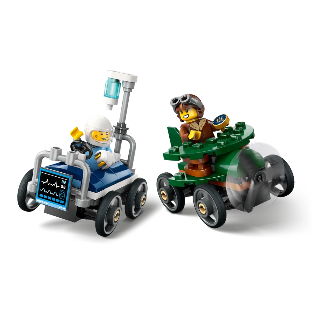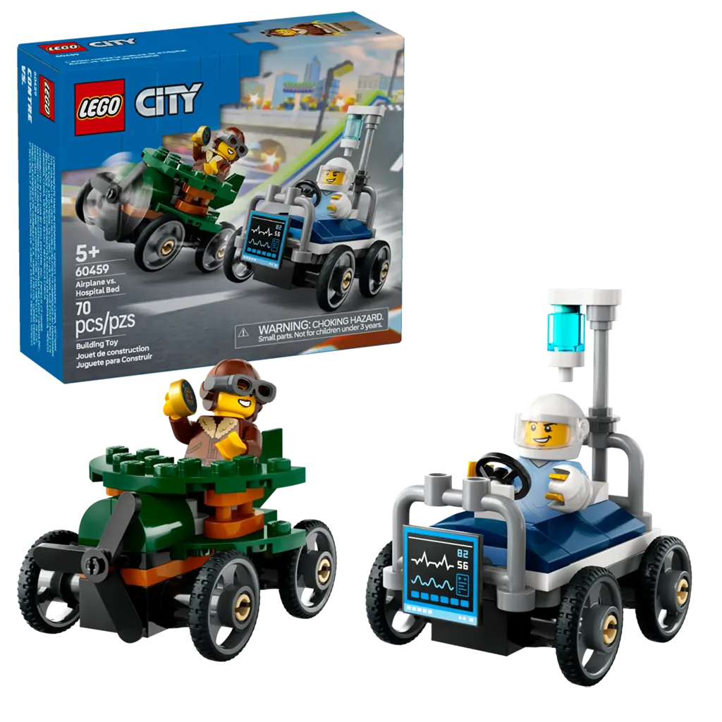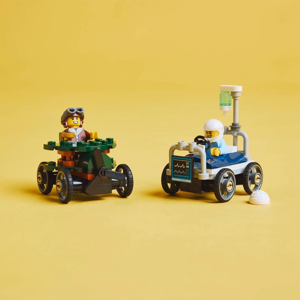 Ensemble de caisses à savon – Surprenez votre jeune amateur de course avec l’Ensemble de course L’avion contre la voiture-lit d’hôpital LEGO® City pour les enfants de 5 ans et plus