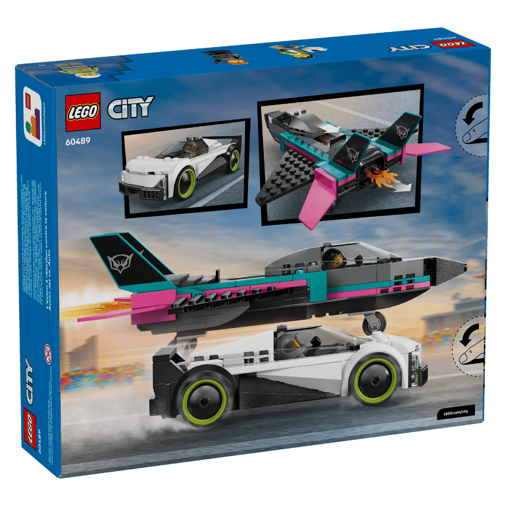 - SET DE COURSE VOITURE CONTRE AVION – Offrez aux enfants des heures de jeu de course palpitante avec le set Le jet contre la voiture LEGO® City (60489), à partir de 6 ans
