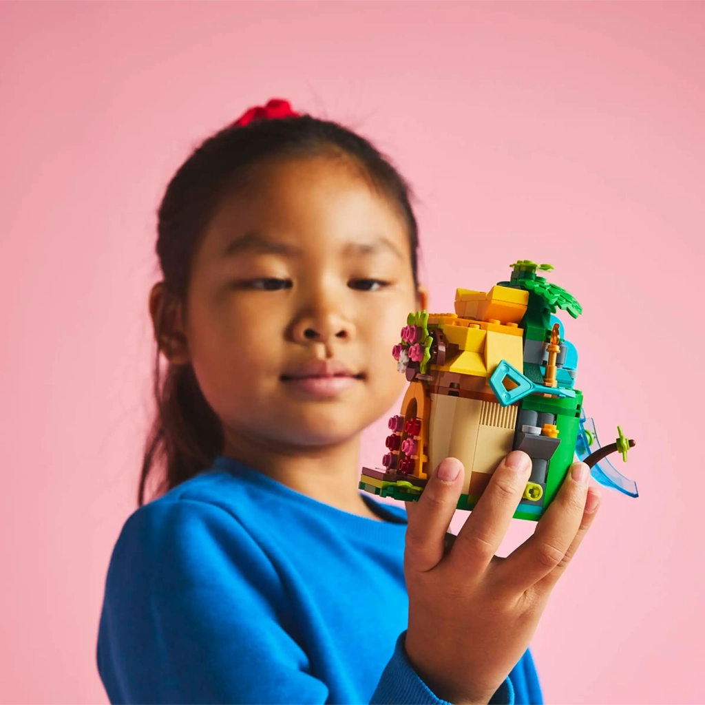 • Ensemble de construction de micromonde – Le jouet à construire comprend un modèle d’île/de maison à deux côtés avec une clé, Moana et sa petite sœur Simea LEGO® ǀ Disney et une figurine animale de Pua LEGO ǀ Disney
