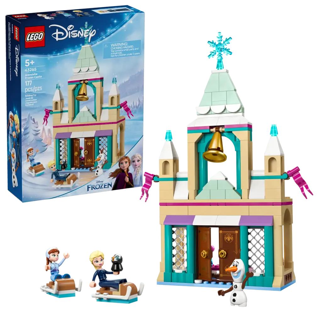 Des aventures hivernales attendent les enfants et les amateurs âgés de 5 ans et plus dans l’amusant ensemble de construction LEGO® ǀ Disney La Reine des neiges Le château de la Reine des neiges à Arendelle (43265), qui comprend un château à construire avec des portes qui s’ouvrent, une salle à manger et une chambre à coucher, deux traîneaux à construire avec lesquels les enfants peuvent faire la course et d’autres éléments de narration amusants. De plus, l’ensemble comprend les minipoupées Elsaet Anna LEGO ǀ Disney et une figurine d’Olaf le bonhomme de neige LEGO ǀ Disney.