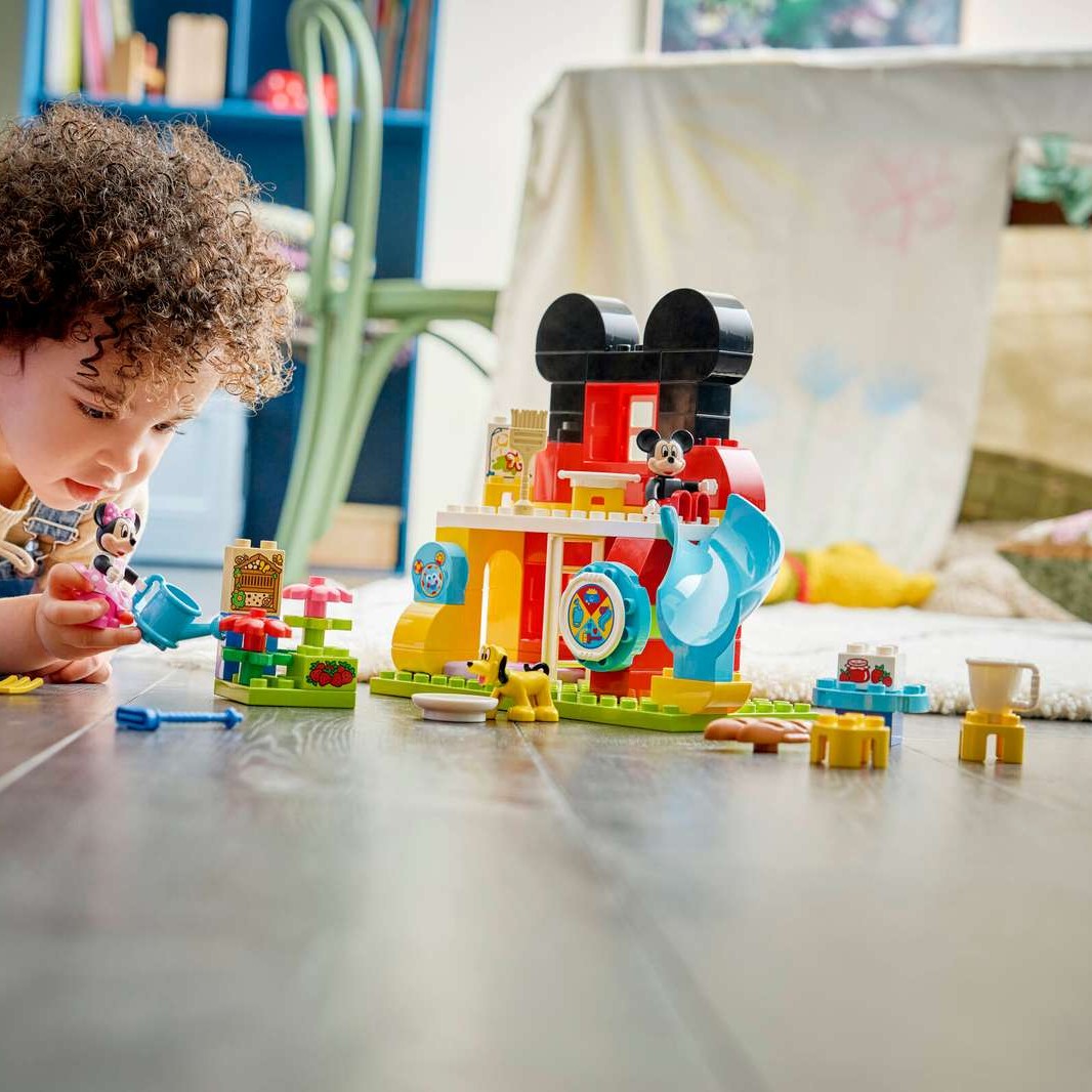 LES FAVORIS DE DISNEY – Ce modèle de maison construite en briques comprend les personnages LEGO® DUPLO® │ Disney Mickey Mouse, Minnie Mouse, Pluto et une brique de Tourniquet pour un jeu de simulation, inspirés de l'émission Disney Junior