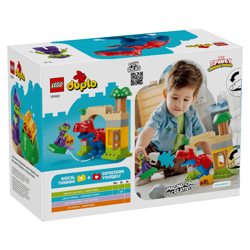 JEU D'ACTION – Inspiré par l'émission Spidey et ses amis extraordinaires, ce jeu de construction LEGO® DUPLO® │Marvel permet au dino superhéros de passer à l'action pour protéger le trésor du Bouffon vert