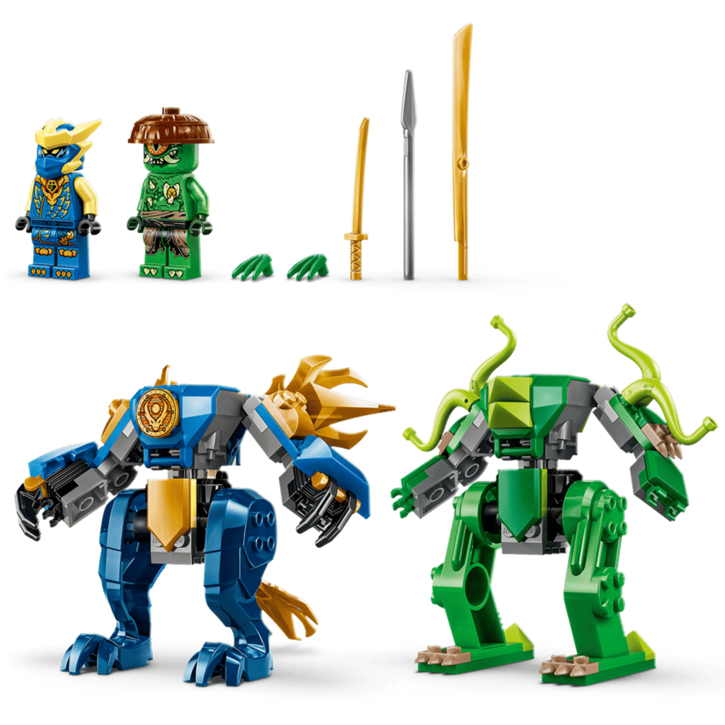 Les garçons et les filles de 4 ans et plus peuvent apprendre à construire et à jouer des scènes de combat de la saison 4 de la série télévisée NINJAGO® : Le soulèvement des dragons avec ce jouet robot amusant. Le jouet d’aventure LEGO® NINJAGO Le combat du robot dragon de Jay comprend 2 robots et 2 figurines. Le robot dragon de Jay dispose d’un habitacle qui s’ouvre pour accueillir sa figurine et d’une queue, d’ailes, de bras, de jambes, d’un corps et de doigts articulés, tandis que le robot de combat du monstre de la mutation dispose d’un habitacle qui s’ouvre pour accueillir sa figurine et de tentacules, de bras, de jambes et d’un torse articulés. L’ensemble comprend également 4 armes interchangeables pour encore plus de possibilités de jeu : 2 épées, une lance et un ensemble de griffes.