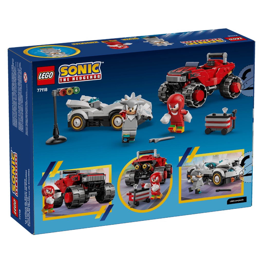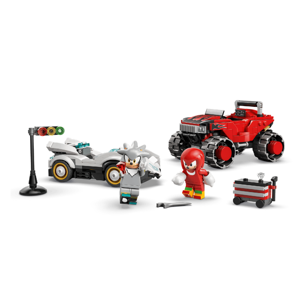 La voiture de Silver contre le Monster Truck de Knuckles LEGO® Sonic the Hedgehog™ inspire des aventures palpitantes aux enfants dès 8 ans. Basé sur le jeu vidéo Sonic Racing : CrossWorld, le set met en scène Knuckles et la toute première minifigurine de Silver dans des courses qui raviront les fans de voitures et de jeux vidéo. Ce jouet LEGO à collectionner inclut 2 Émeraudes du Chaos, une boîte à outils qui roule, un feu de départ et des outils multipliant les options de jeu créatif.