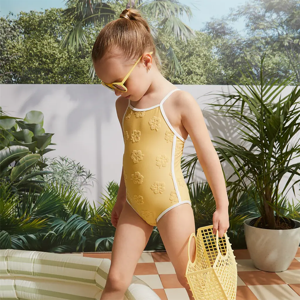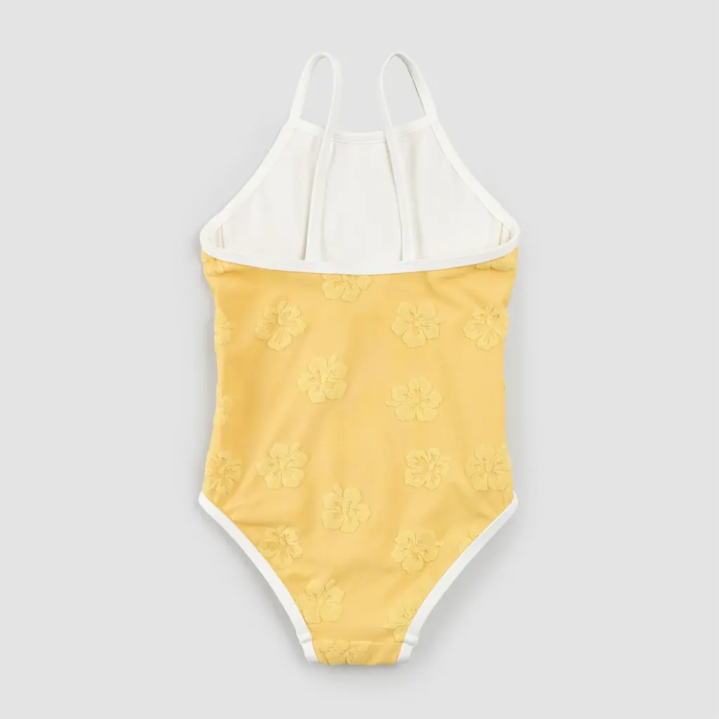 Miles - Maillot une-pièce - Hibiscus embossé - Or (Ado)