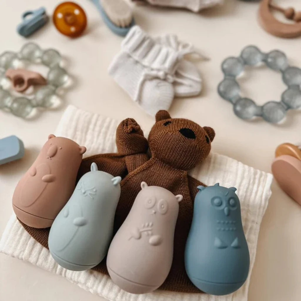 C'est l'heure du bain avec les jouets de bain oscillants noüka. Pressez-les pour les remplir d'eau et vaporisez-les, ou regardez-les osciller à la surface. Les pièces détachables se démontent pour un nettoyage facile et une prévention des moisissures. Fabriqués en silicone alimentaire souple et flexible, nos jouets de bain oscillants sont durables et résistants. Petits et grands adoreront leur adorable forme d'ours et leur design minimaliste et intemporel.