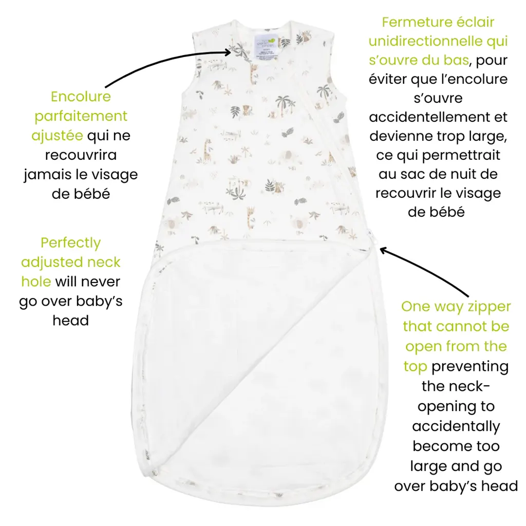 Fait à la main au Canada par une couturière attentionnée, ce sac de nuit signé Perlimpinpin a tout pour plaire à bébé! Tenant ses petits pieds au chaud tout au long de la nuit, cette gigoteuse lui permettra de bouger à sa guise pendant son sommeil, le tout, sans être gêné par la fermeture éclair. En effet, nous avons placé celle-ci de sorte que bébé ne sente jamais sa présence. Recréant un petit cocon, ce sac de nuit gardera sa belle allure, lavage après lavage.