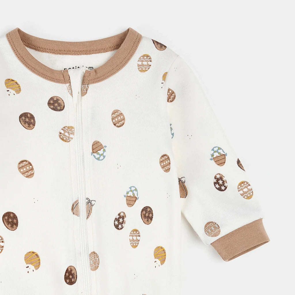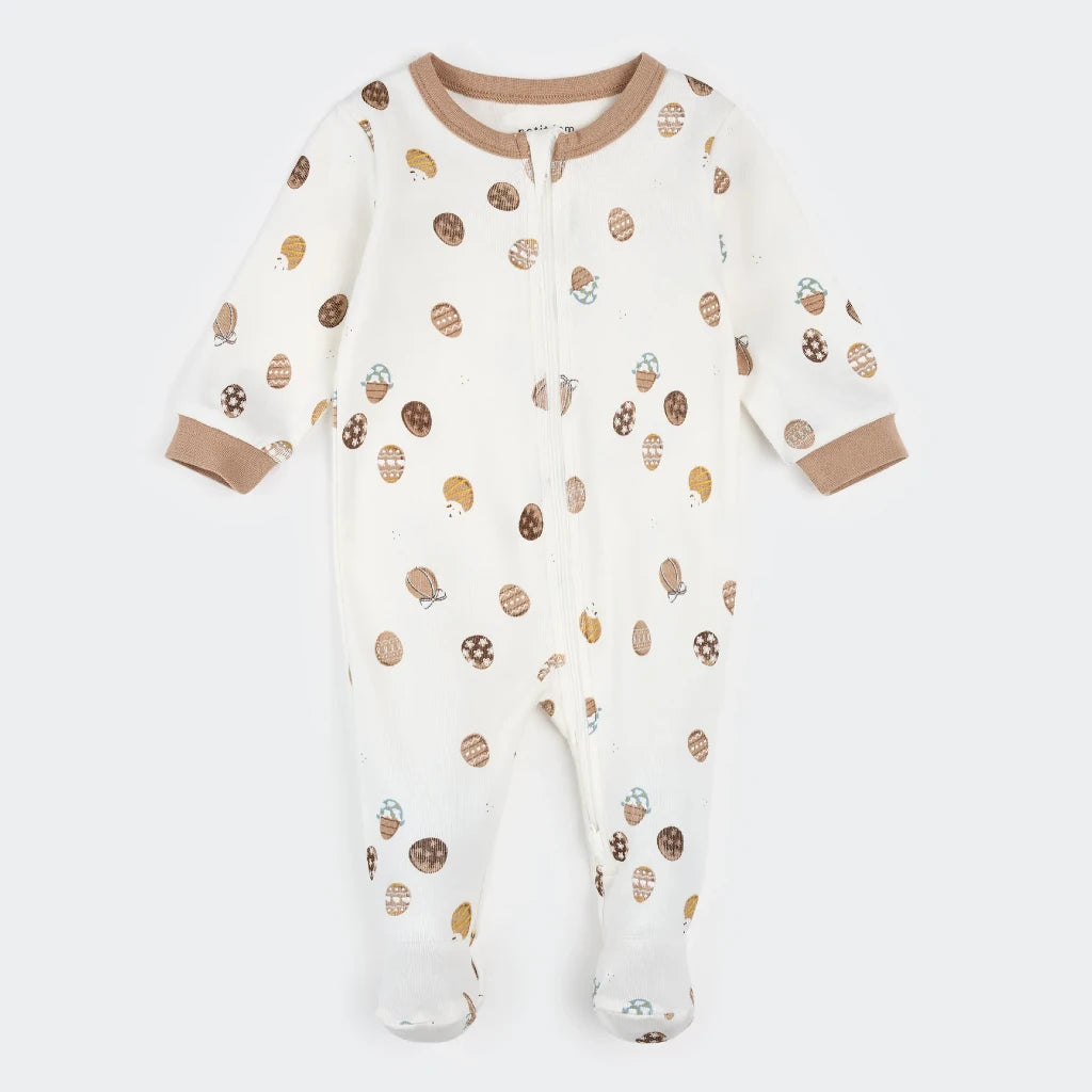 Cette dormeuse festive rendra votre petit poussin de printemps si mignon qu'on aurait envie de le manger, avec son imprimé d'œufs de Pâques. Fabriquée en coton côtelé très doux et dotée de pieds intégrés, cette dormeuse garde les nouveaux-nés bien au chaud de la tête aux pieds. La fermeture éclair dans les deux sens est très pratique et facilite le changement. Les poignets unis brun chocolat complètent le tout avec une coupe ajustée; parfait pour les câlins endormis avec maman, les chasses aux œufs tôt le matin et tous les moments adorables entre les deux.