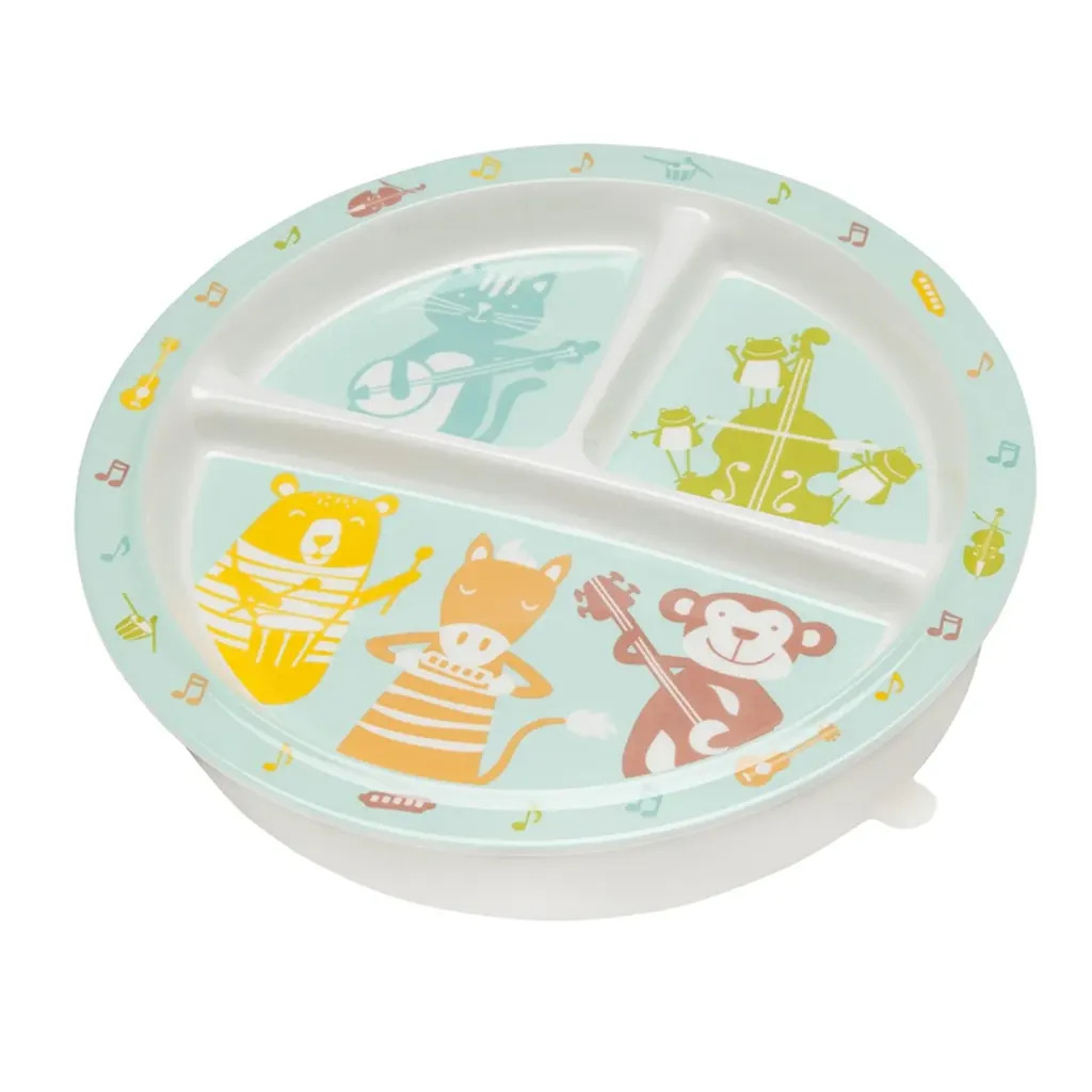 Fabriquée à partir de mélamine durable, cette plaque d'aspiration divisée de Sugarbooger by ore présente des graphismes doux qui plaisent aux petits enfants. Évitez les déversements grâce à la base en silicone amovible qui aspire la plupart des chaises hautes et des surfaces.